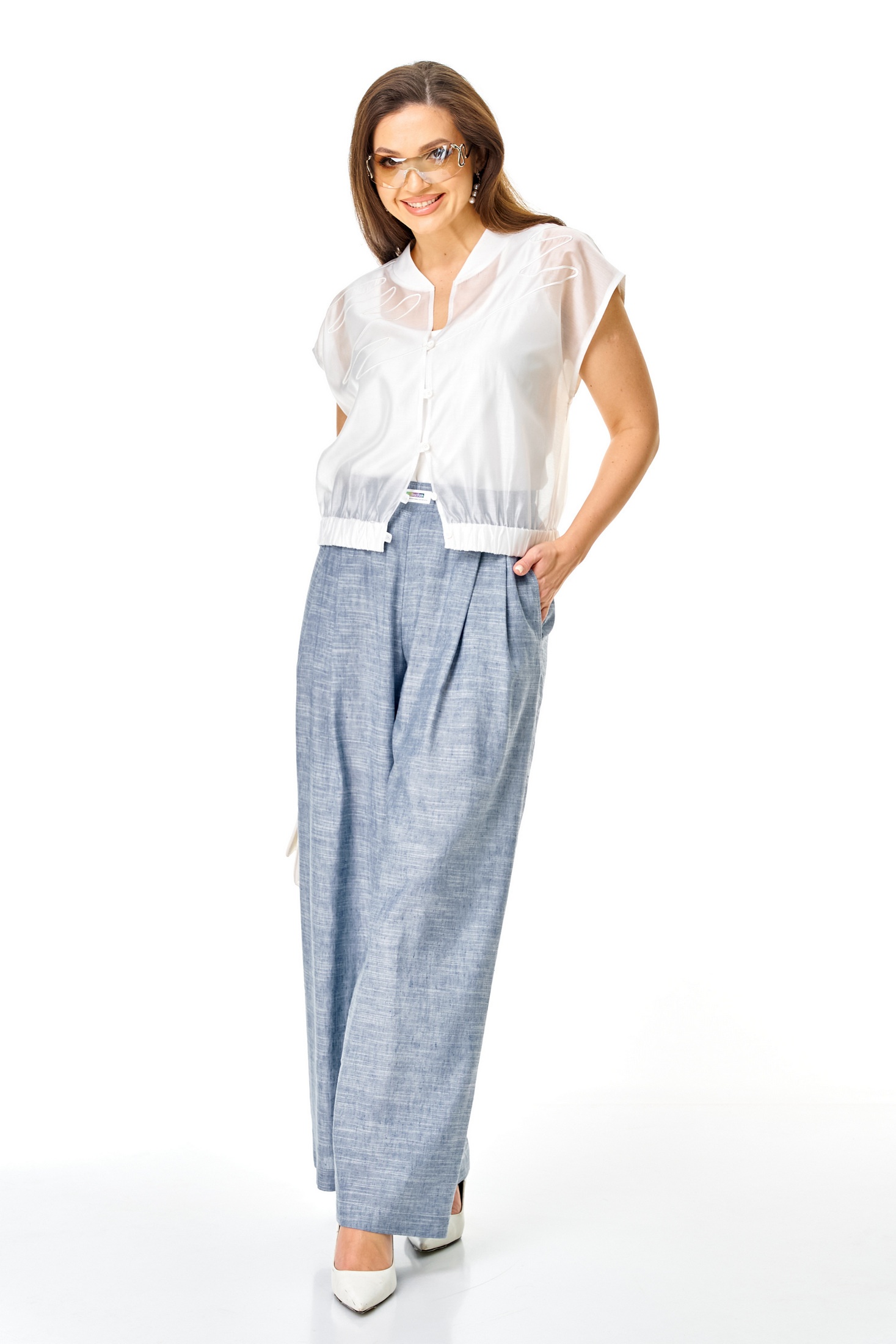 Костюм брючный 1436 голубой+белый Karina Delux – это стильное решение для вашего гардероба. Коллекция бренда Karina Delux предлагает комплект из бомбера, топа и брюк, выполненных из материалов с уникальными свойствами. Верхняя часть костюма изготовлена из тонкой вискозной вуали и трикотажного полотна, что обеспечивает комфорт в любую погоду. Прямой силуэт и спущенный рукав добавляют образу расслабленности и легкости. Брюки из льняной ткани придают комплекту текстурность и воздушность, а пояс на резинке обеспечивает удобство. Голубой и белый цвета делают костюм подходящим как для повседневной носки, так и для летних прогулок. Прекрасный выбор для теплых сезонов, когда хочется выглядеть свежо и стильно.