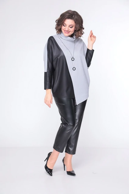 Костюм брючный 1420 светло-серый + черный LADIS LINE