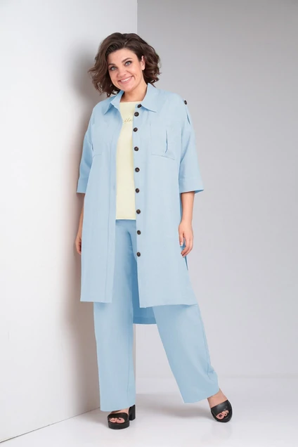 Костюм брючный 1488 голубой LADIS LINE