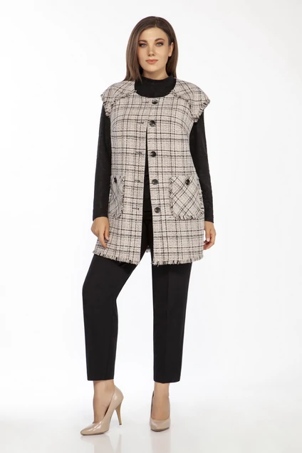 Костюм брючный 1409 песочно-черный LaKona