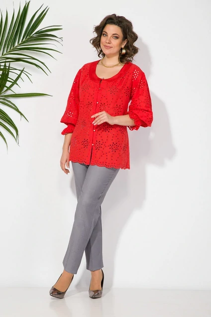 Костюм брючный 1411 БрЛ алый + серый Liliana-style