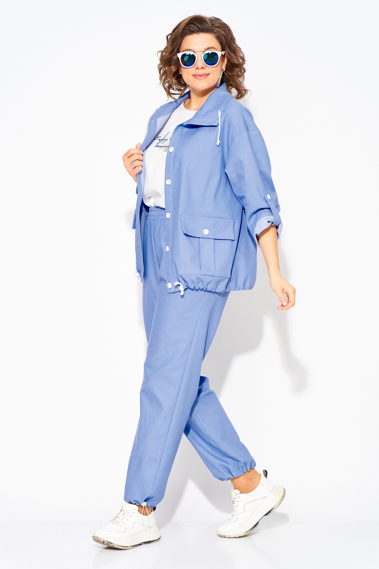 Костюм брючный 1445Н голубой Liliana-style — это стильная модель из хлопка, отличающаяся комфортом и универсальностью. Коллекция бренда Liliana-style предлагает одежду, идеально подходящую для повседневного использования. Костюм выполнен в привлекательном голубом цвете, состоящем из свободной парки с отложным воротником и прямых брюк с завышенной талией. Наличие накладных карманов с клапаном и центральной застежки на пуговицах добавляет удобства. Длина парки — 65 см, длина рукава — 45 см, брюки — 98 см. Спущенный рукав ¾-ти и регулируемые элементы, такие как кулиска по низу, делают костюм подходящим для любого сезона, особенно весны, лета и осени. Брюки на резинке с боковыми карманами обеспечивают свободу движения и практичность для повседневных дел.