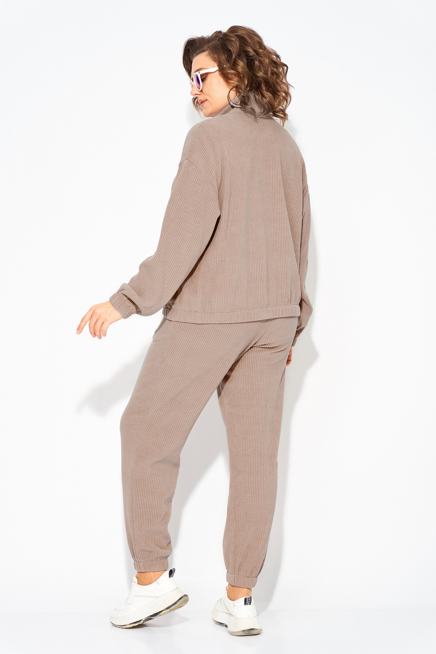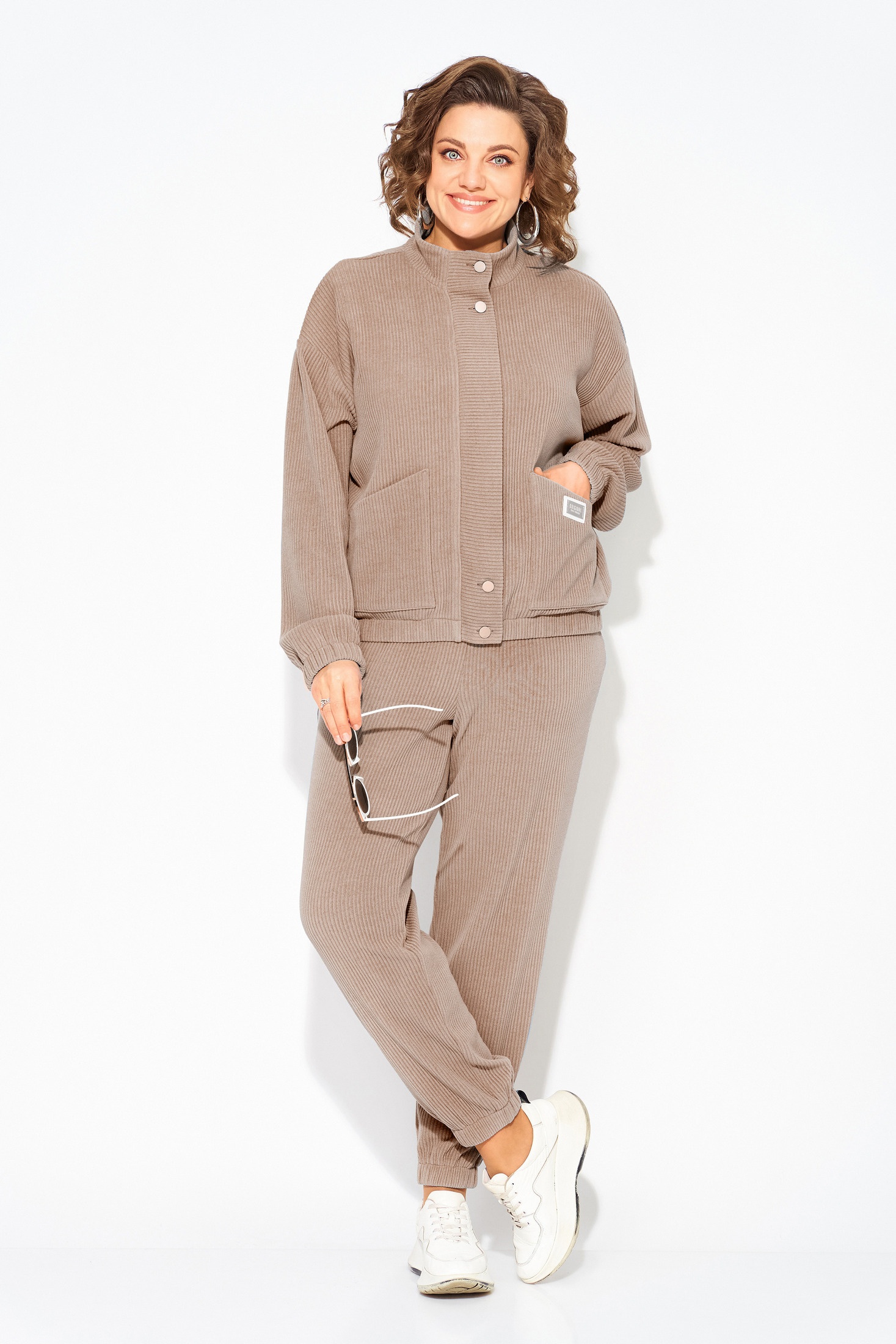 Наш женский костюм в стиле спорт-шик создан для тех, кто ценит комфорт и стиль. Идеально подходит для весны сезона 2026, предлагая современный дизайн. Он выполнен из мягкого трикотажного вельвета, состоит из худи свободного силуэта, с застежкой на тесьму-молнию и декоративной планкой по центру. Комфортная мягкая стойка воротник прилегает к горловине. Рукав на спущенном плече, длинный. По низу изделия и рукава предусмотрена резинка для комфортного прилегания. По полочке расположена накладные карманы. Брюки свободного кроя, на притачном поясе с круговой резинкой. Имеются боковые карманы. Брюки по типу «джогеров» присборены по низу на резинку.