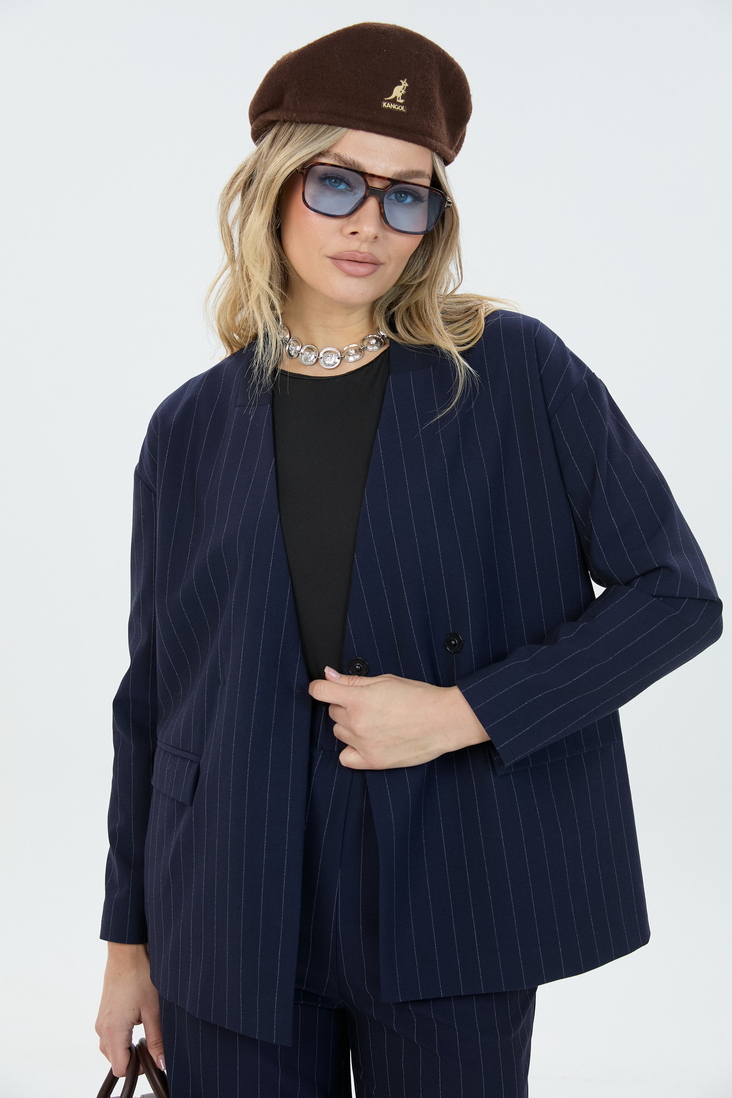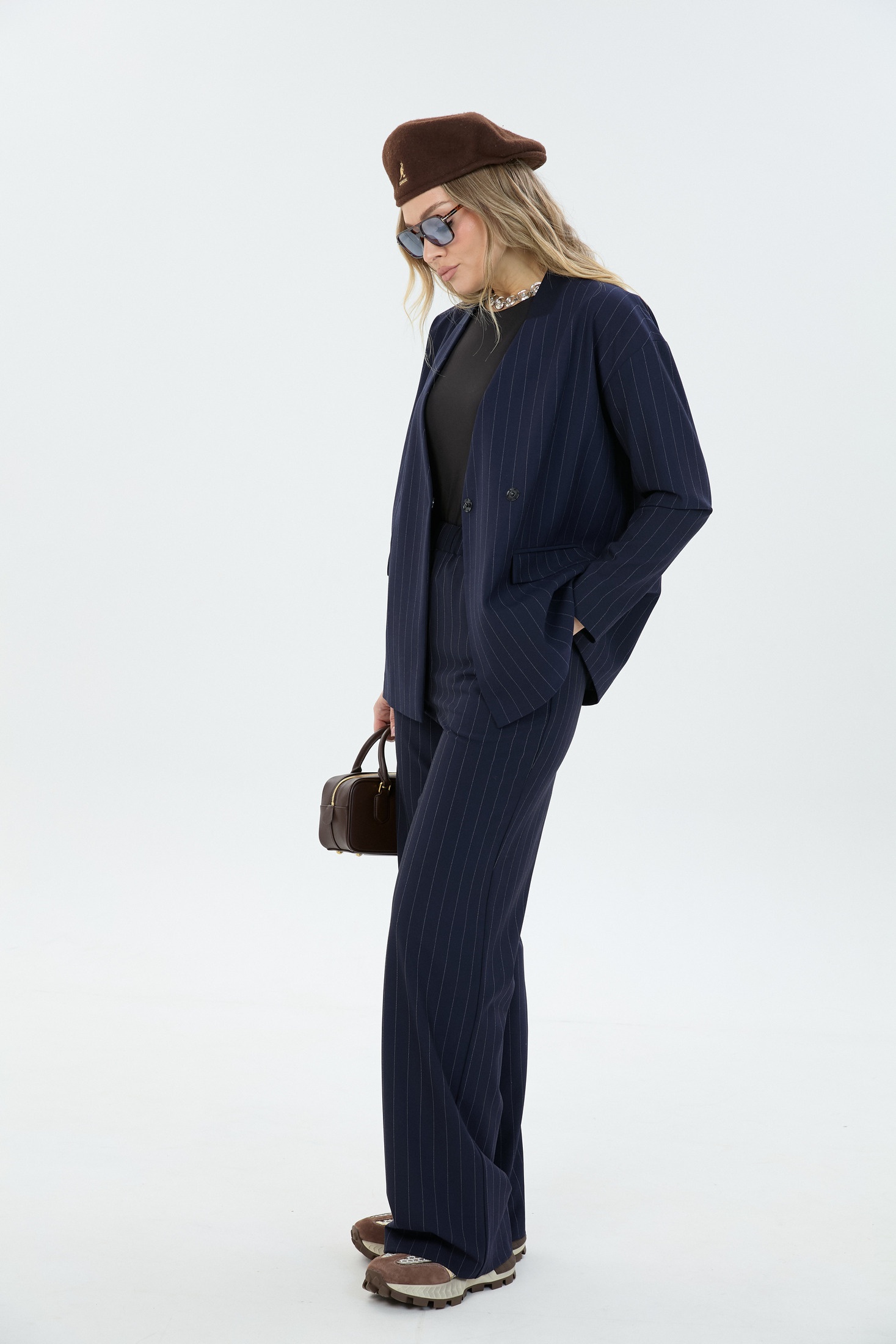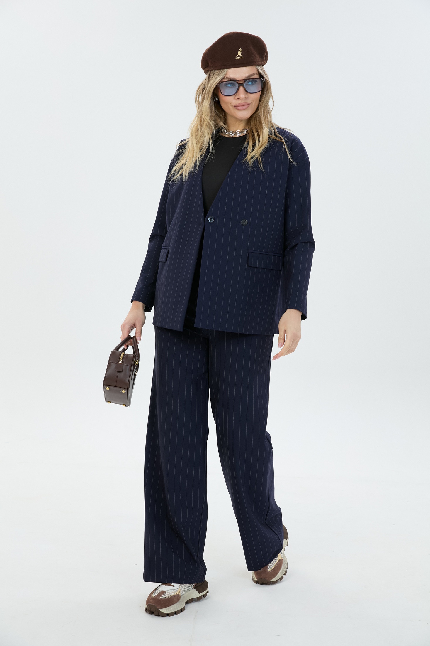 - Брючные костюмы в полоску