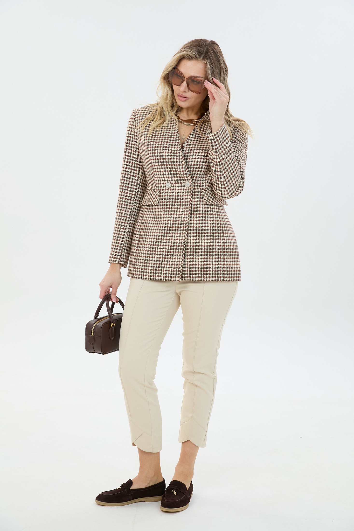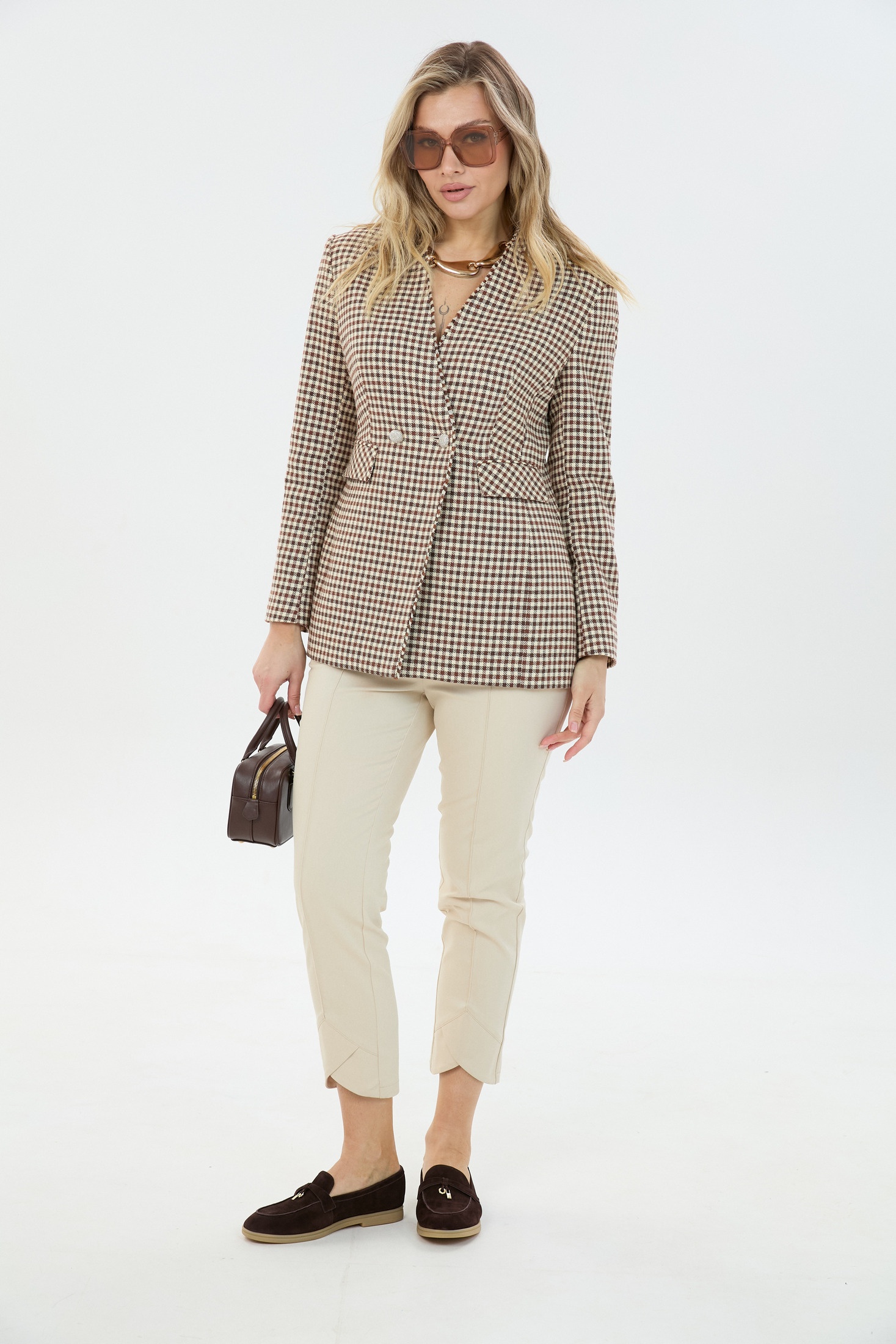 Костюм брючный 80320136 LM (Лаборатория моды) — стильный выбор для ценителей комфорта и элегантности. Коллекция бренда Лаборатория моды предлагает уникальный комплект, включающий в себя двубортный жакет из 100% льна и зауженные брюки длиной 7/8 из хлопка с эластаном. Жакет оформлен стойкой, переходящей в V-образный воротник, и обладает прорезными карманами с клапаном, подкладка добавляет комфорт в носке. Брюки с фигурной отделкой по низу и эластичным поясом обеспечивают удобную посадку. Этот костюм идеально подходит для делового стиля и сезона весна-осень, выполнен в приятной светлой палитре: бежевый и клеточный рисунок. Отличный выбор для повседневных и рабочих встреч.