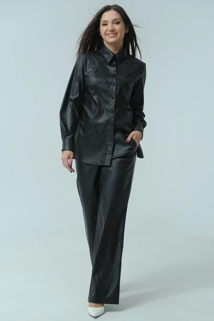 Двухпредметный костюм Ma Сhérie из экокожи, состоящий из рубашки и брюк.