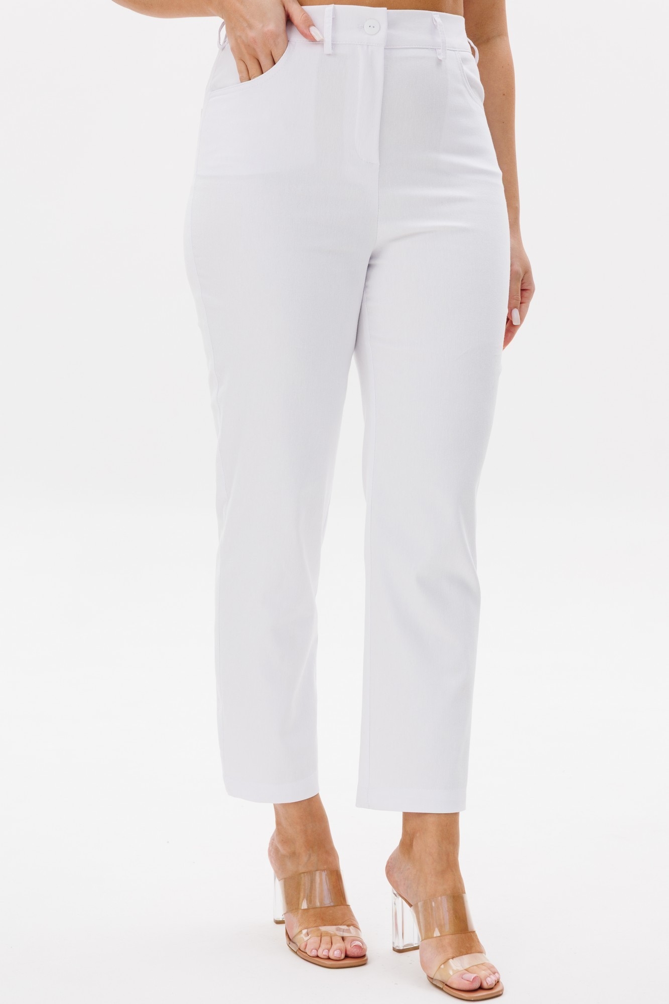 Брюки длиной 7/8. Пояс притачной, застежка на молнию с гульфиком и петлю-пуговицу. Спереди и сзади функциональные карманы.
