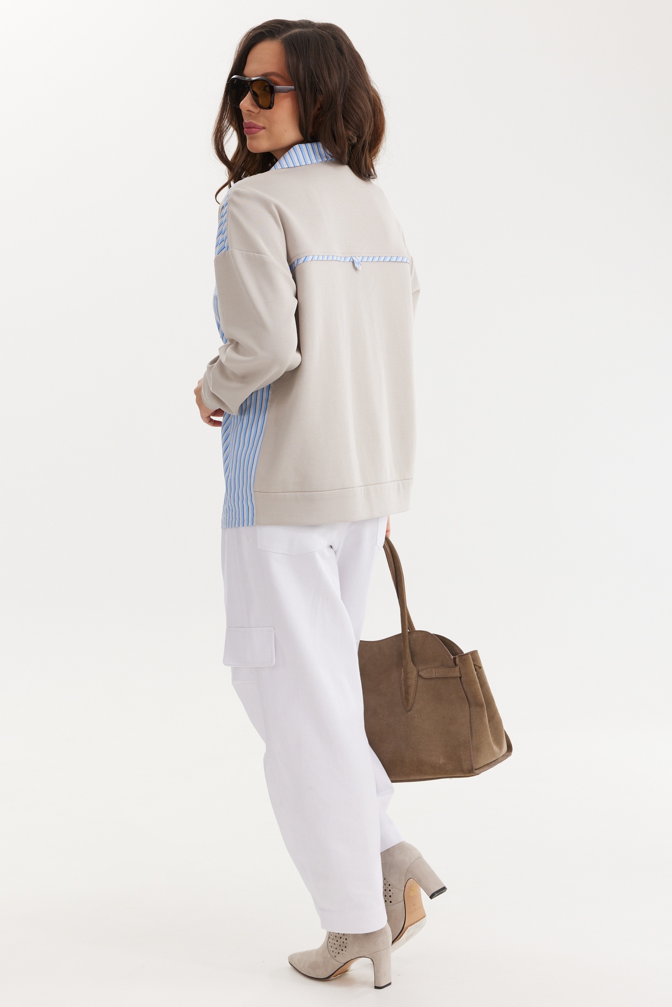 Костюм брючный 2693 бежевый + голубой Магия Моды — это стильный выбор для вашего гардероба. Коллекция бренда Магия Моды предлагает комплект из блузы и брюк, выполненных из хлопка и полиэстера. Длина блузы от плечевого шва 67 см, а длина рукава 60 см обеспечивают комфорт и свободу движений. Брюки со средней посадкой и длиной по боковому шву 96 см выполнены из белой джинсовой ткани с эластичной тесьмой в поясе. Декоративные элементы, такие как завязки на плечах и защипы на коленях, добавляют образу свежести. Классическое расположение боковых и задних карманов с хольнитенами делают костюм функциональным. Этот комплект идеально подходит для весеннего и осеннего гардероба, предавая наряду неповторимый стиль. Длина блузы от плечевого шва 67см. Длина рукава 60см. Длина брюк по боковому шву 96см.