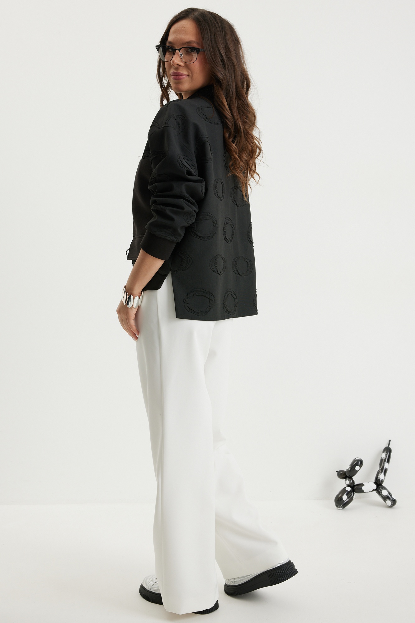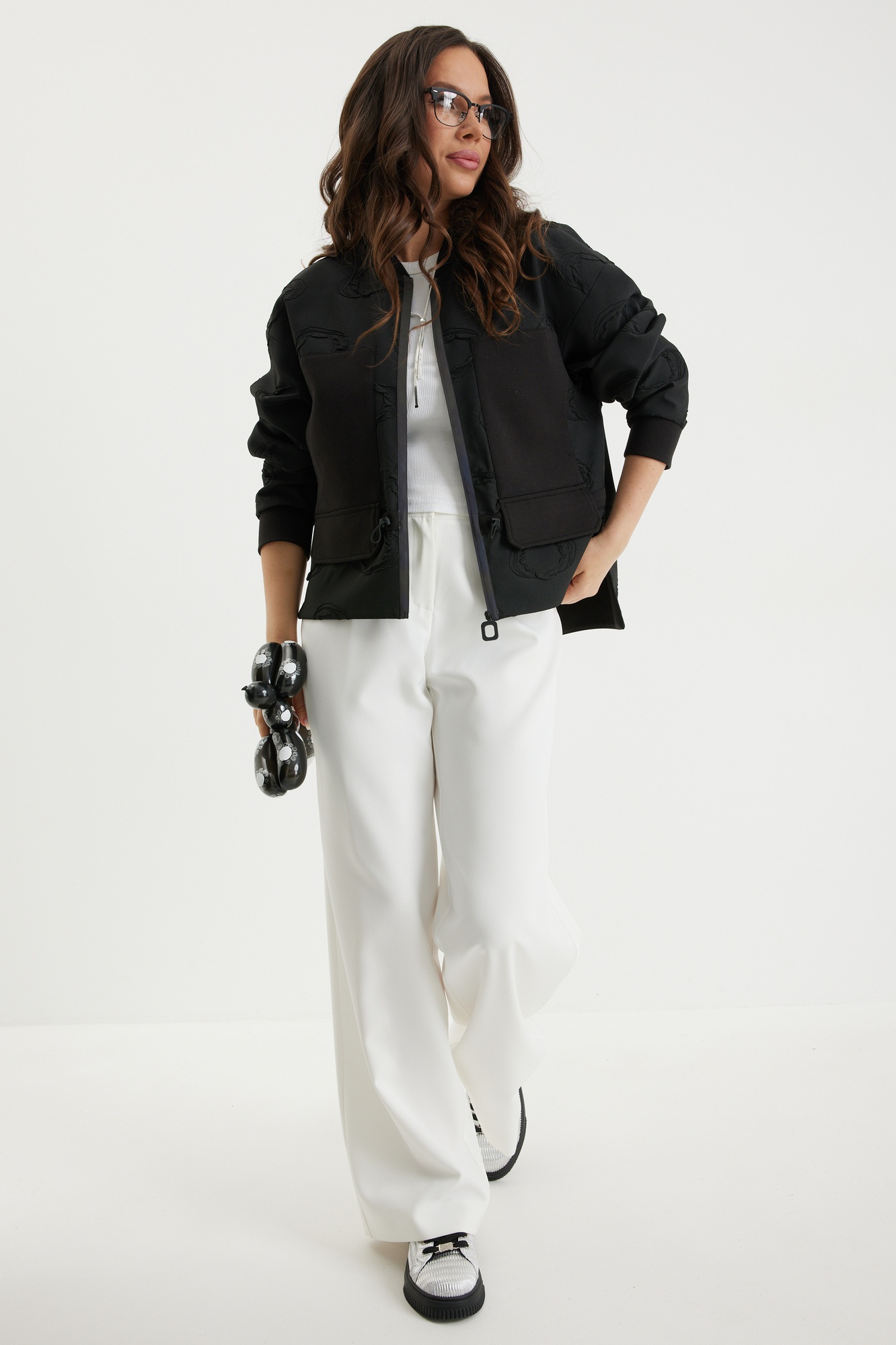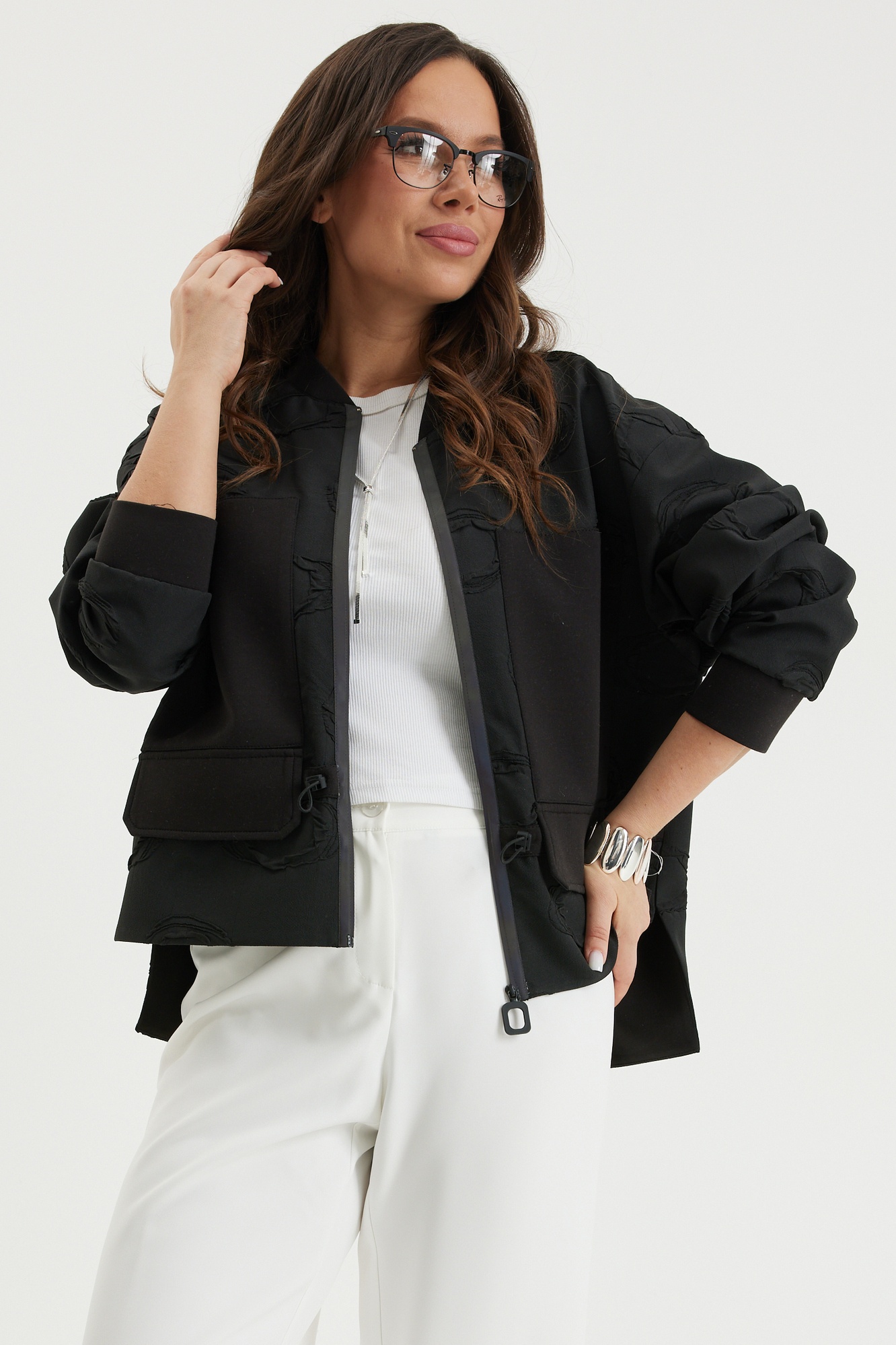 Костюм брючный 2696 черный + молочный Магия Моды предлагает современный стильный ансамбль для каждого дня. Коллекция бренда Магия Моды включает удобный бомбер с центральной молнией и классические брюки. Выполненные из фактурного жаккардового полотна, изделия предлагают комфорт благодаря рукавам на эластичной тесьме и карманам. Брюки прямого покроя с поясом и застежкой на молнию идеально подойдут для офисного или повседневного стиля. Приятная подкладка исключает просвечивание, обеспечивая надежность и уверенность в любом образе. Черно-молочный цвет создает универсальный комплект для всех сезонов. Длина бомбера по спинке 70 см, брюки по боковому шву 104 см.
