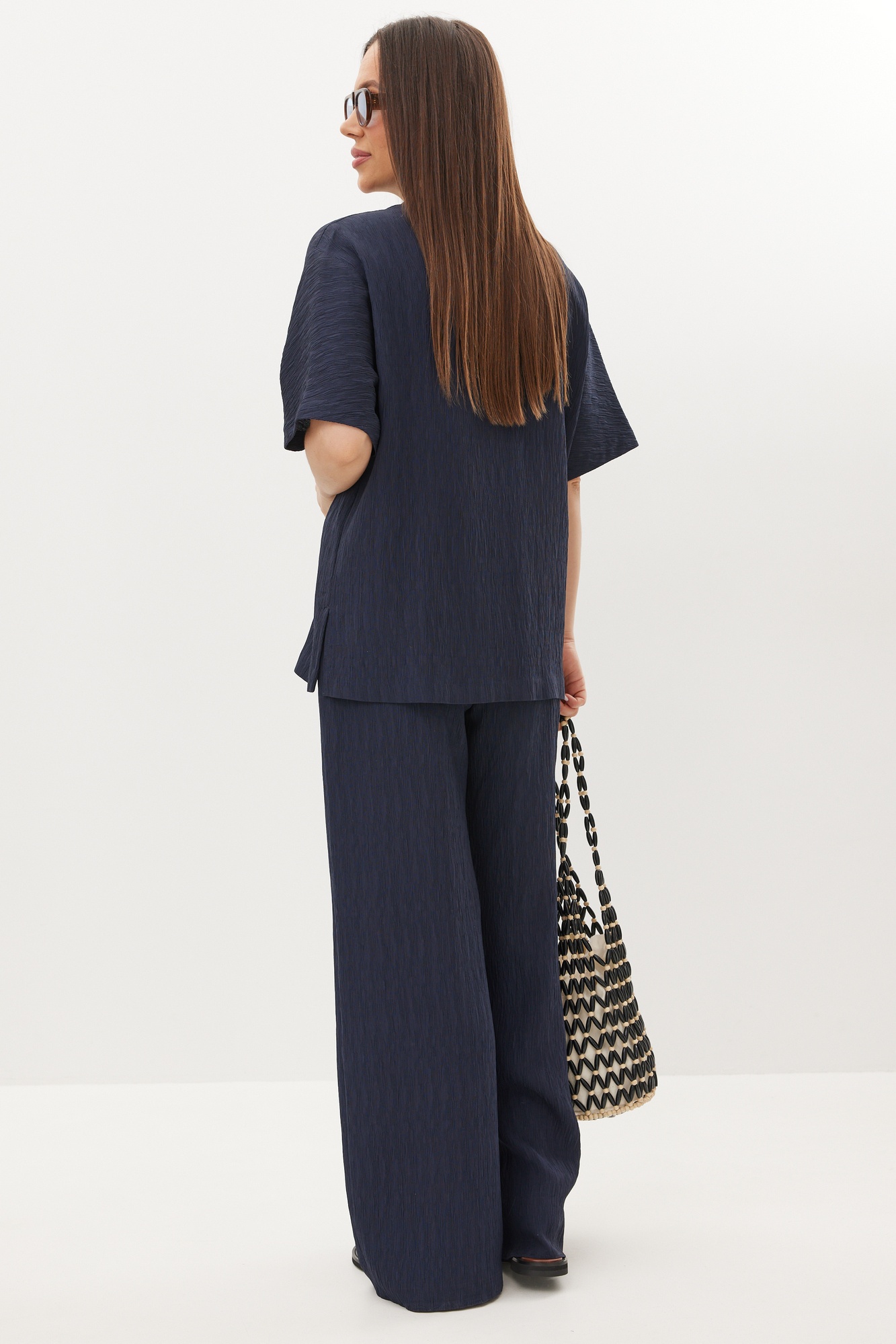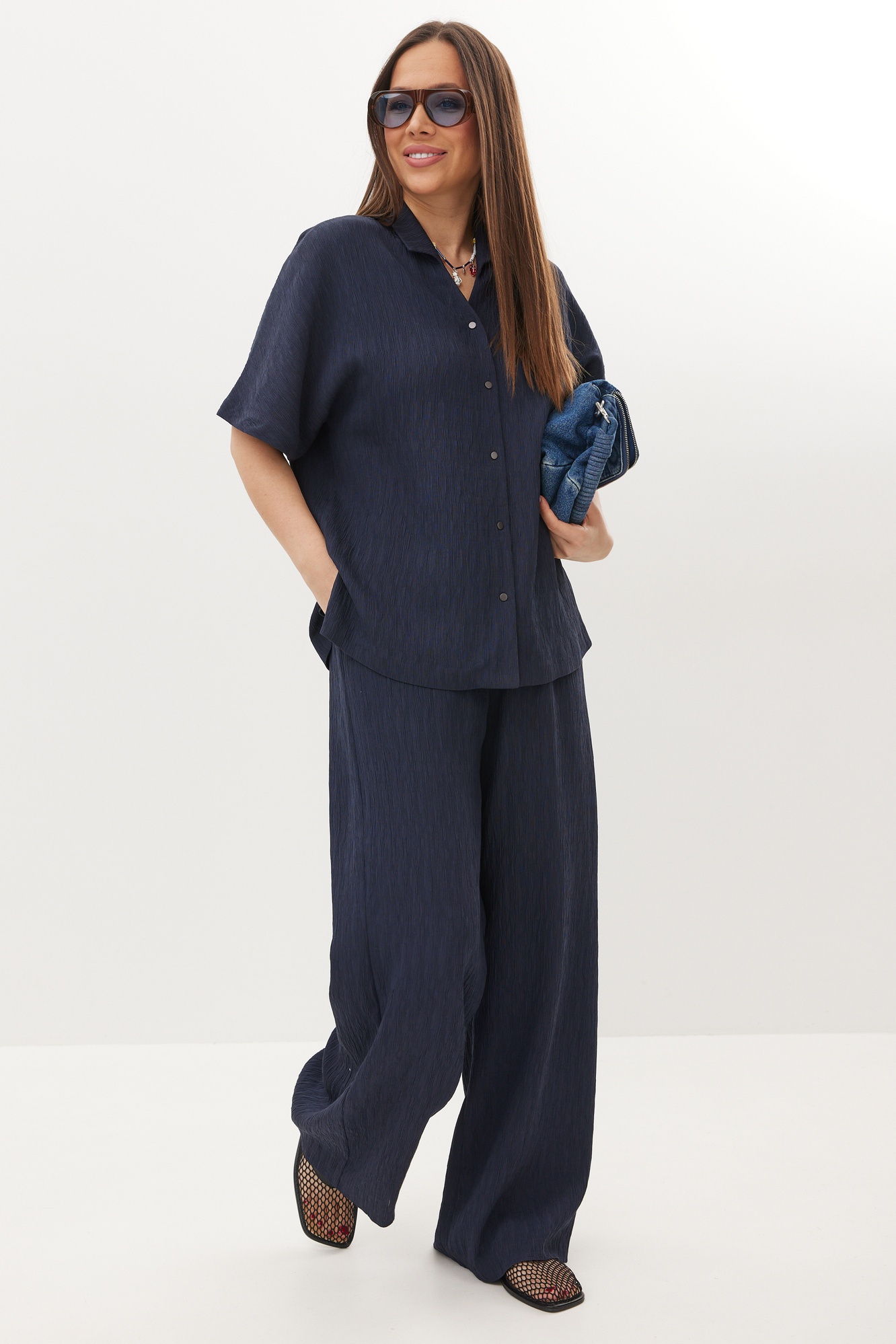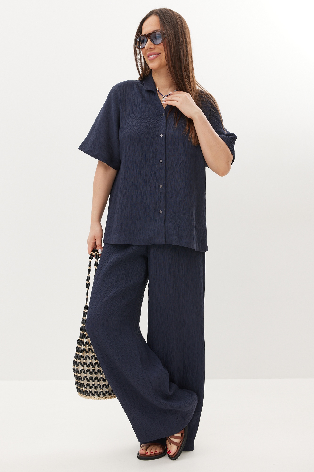 Костюм брючный 2718 синий Магия Моды — это стильный выбор для вашего гардероба. Коллекция бренда Магия Моды предлагает комплект из рубашки и брюк, выполненных из натуральной фактурной ткани, состоящей из хлопка, полиэстера и спандекса, что обеспечивает комфорт и свободу движений. Рубашка свободного кроя с металлическими кнопками и отложным воротником идеально подходит для деловых встреч и повседневного использования. Прямые брюки с эластичной тесьмой на поясе предлагают комфортную среднюю посадку и практичные боковые карманы. Длина рубашки составляет 70 см, а длина брюк — 107 см по боковому шву. Синий цвет и классический стиль костюма делают его универсальным вариантом для весеннего и летнего сезонов.