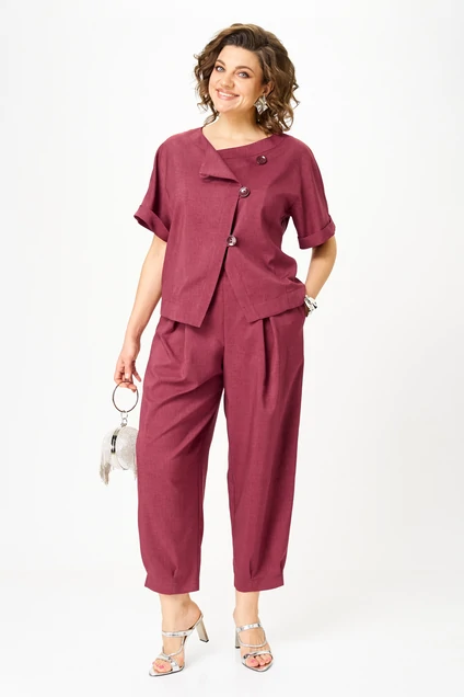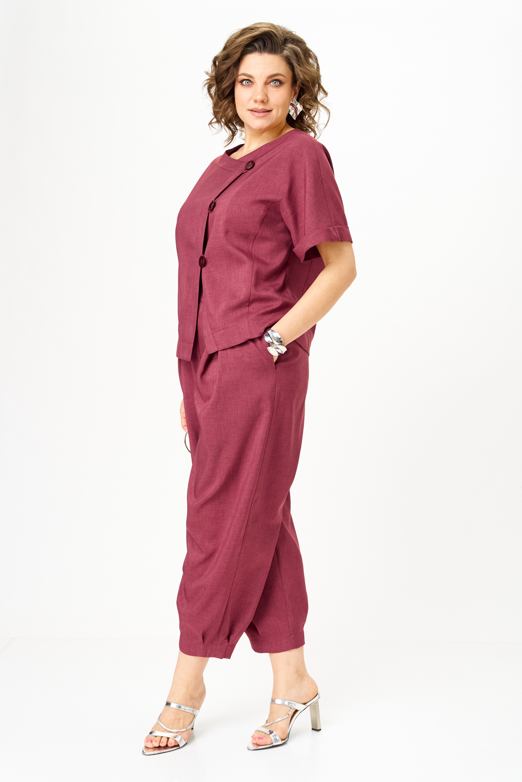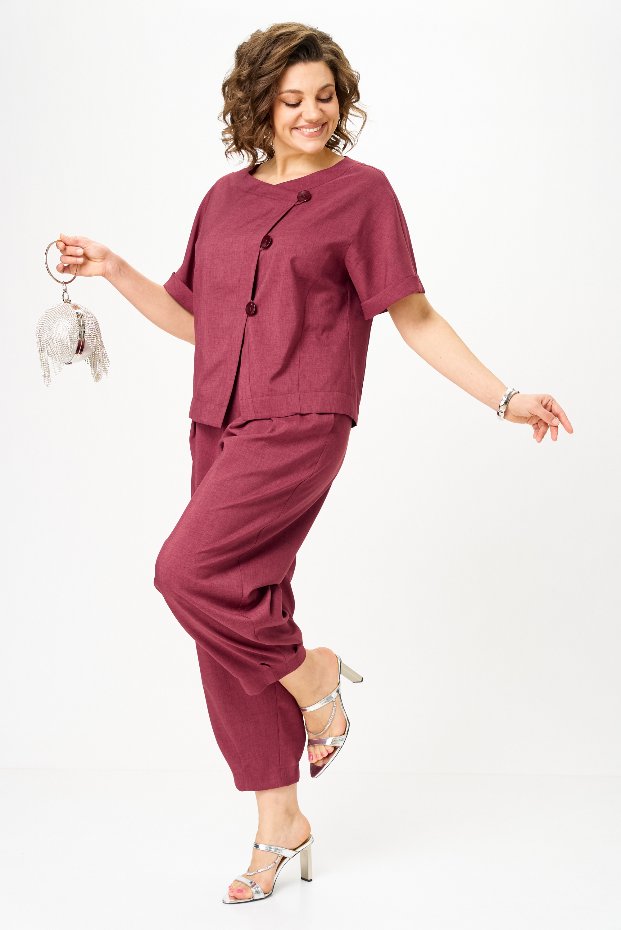 Костюм брючный 1337-1 рубиновый Michel Chic