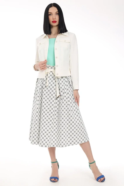Костюм с юбкой 2400 молочный + черный принт Мода-Юрс