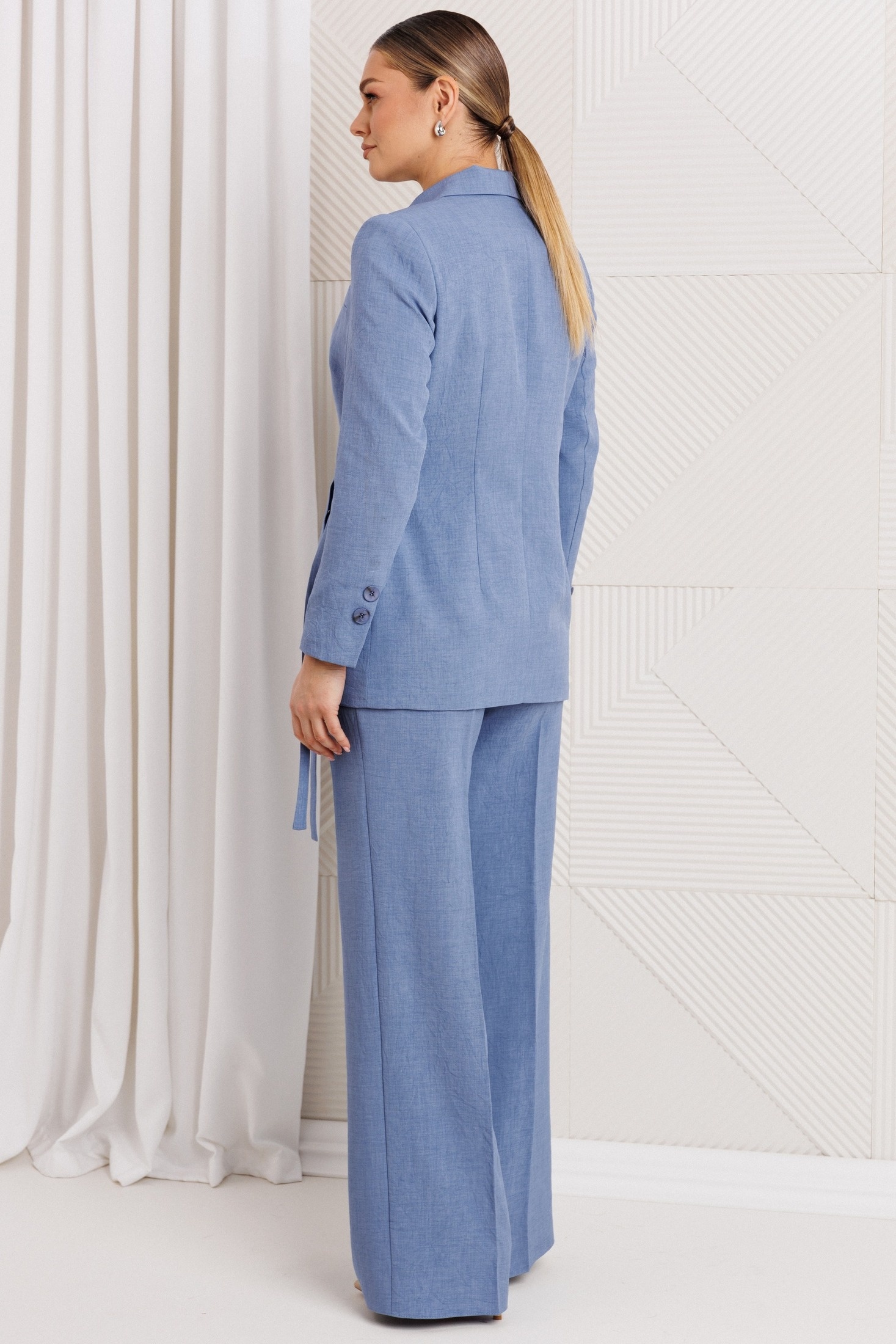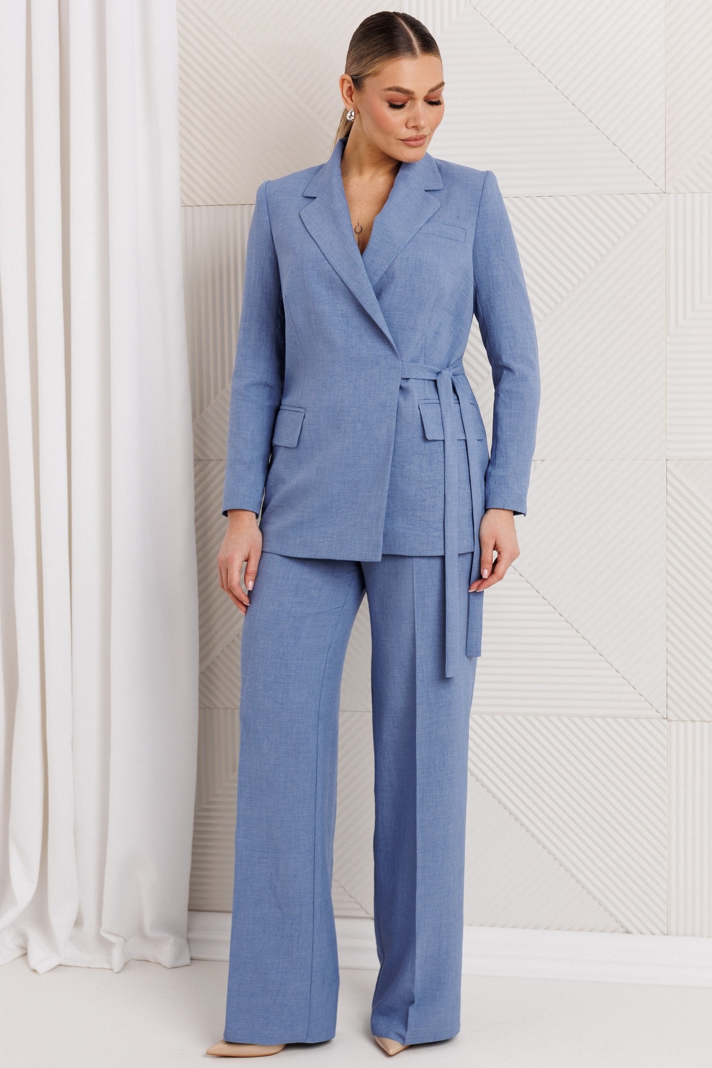 Костюм брючный 26-2669 синий Мода-Юрс — это стильный и универсальный выбор на каждый день. Коллекция бренда Мода-Юрс предлагает этот костюм из лёна и вискозы, обеспечивающий комфорт и отличную посадку. Жакет полуприлегающего силуэта, удлиненный, с талиевыми вытачками и карманами в рамку с клапанами. Уникальная застежка на завязку и потайную пуговицу придают фасону изящность. Воротник пиджачного типа и подкладка добавляют классическое совершенство. Брюки на притачном поясе с резинкой и завышенной талией выгодно подчеркивают силуэт. Симметричные складки и карманы добавляют функциональности. Синий цвет костюма идеально подходит для офисного и повседневного стиля, в то время как натуральные материалы делают его подходящим для всех сезонов.