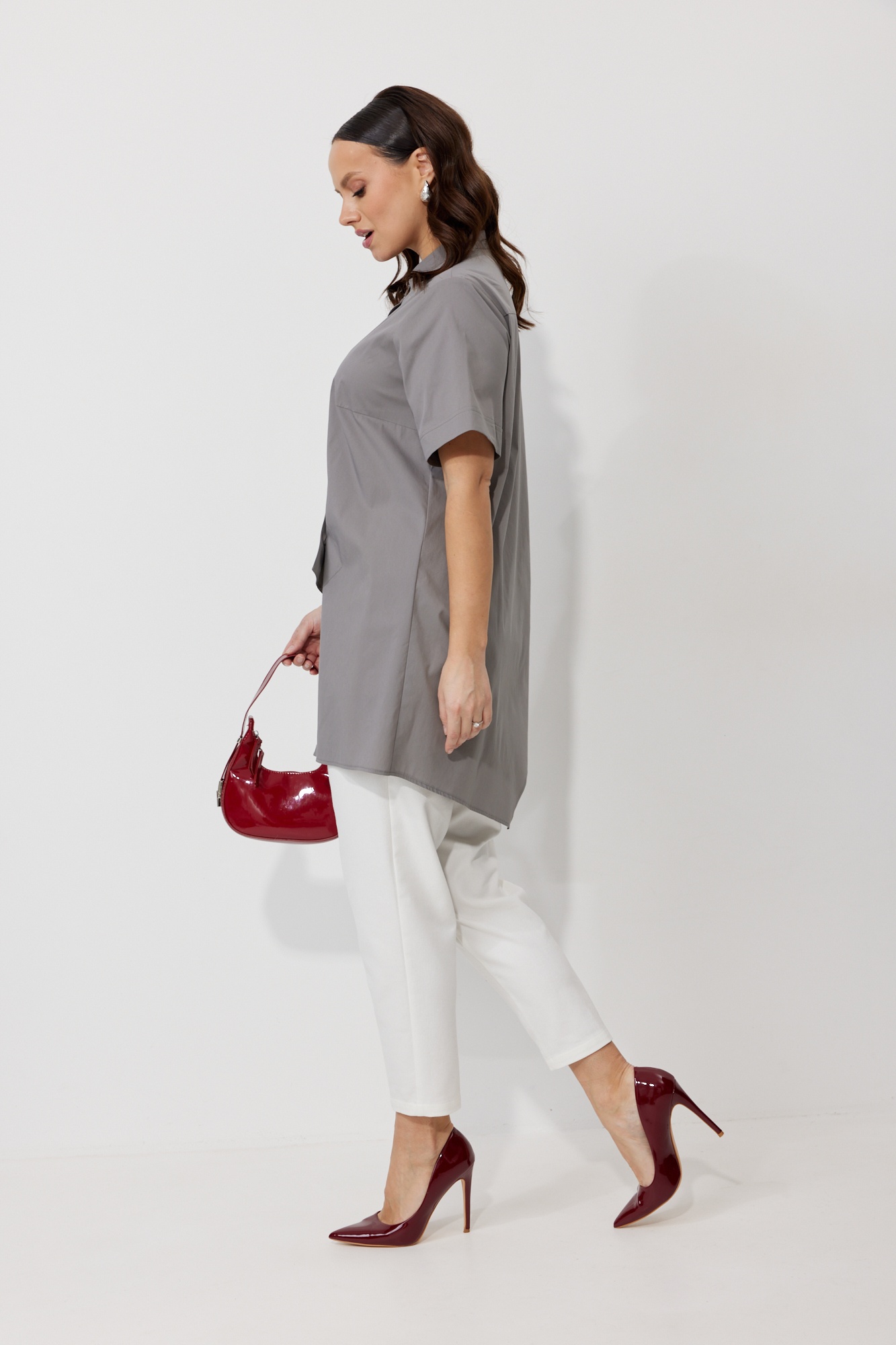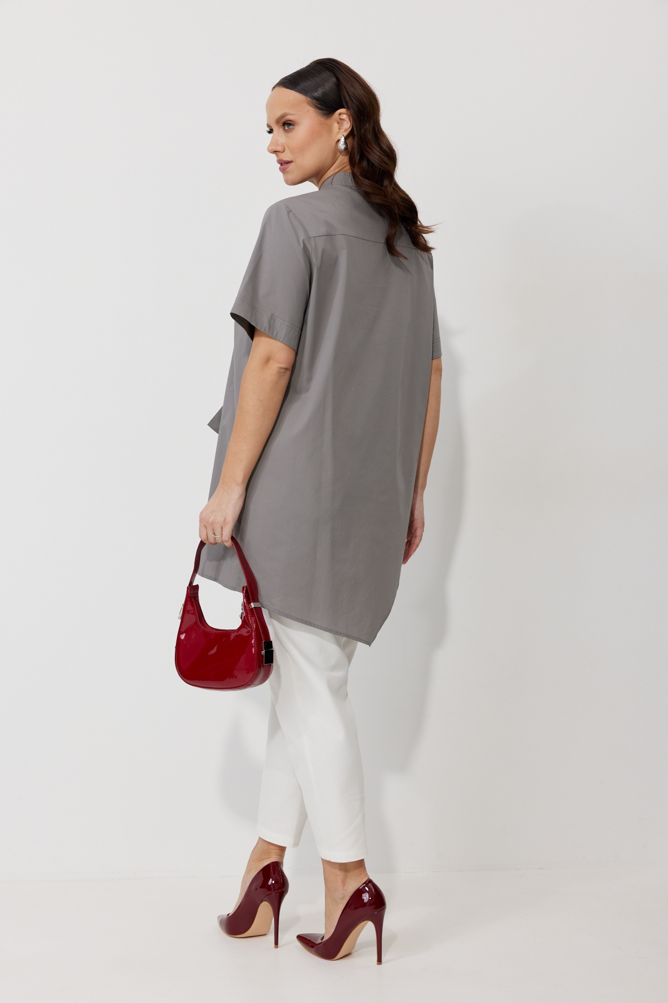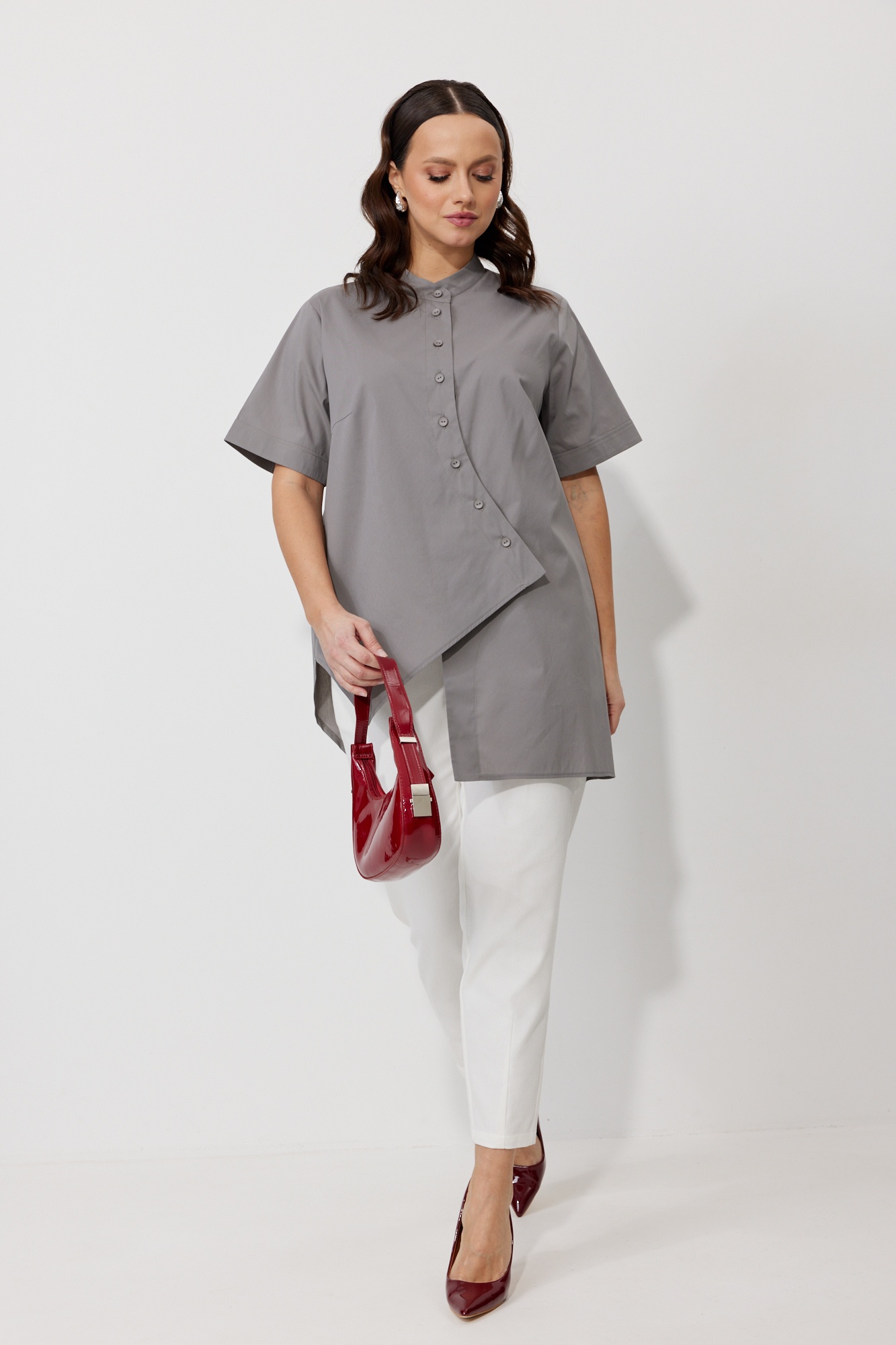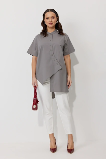 Костюм брючный 157 серый+молоко Мублиз создаст стильный образ для офиса или городских прогулок. Коллекция бренда Mублиз включает свободную блузу из рубашечной ткани на хлопковой основе и зауженные брюки из джинсовой ткани. Блуза с ассиметричной петли-пуговицы застежкой и воротником-стойкой придает образу выразительность. Джинсовые брюки с высокой посадкой и наклонными карманами комфортны для повседневной носки. Серый и молочный цвета костюма прекрасно сочетаются, выделяя вас в любом окружении. Идеально для весенне-летнего сезона.