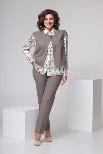 Комплект женский 3-х предметный. Блуза прямого силуэта свободной формы. Жилет прямого силуэта слегка укороченный с застежкой на пуговицу. Брюки классические на притачном поясе частично на резинке.Длина рукава: 60 см.