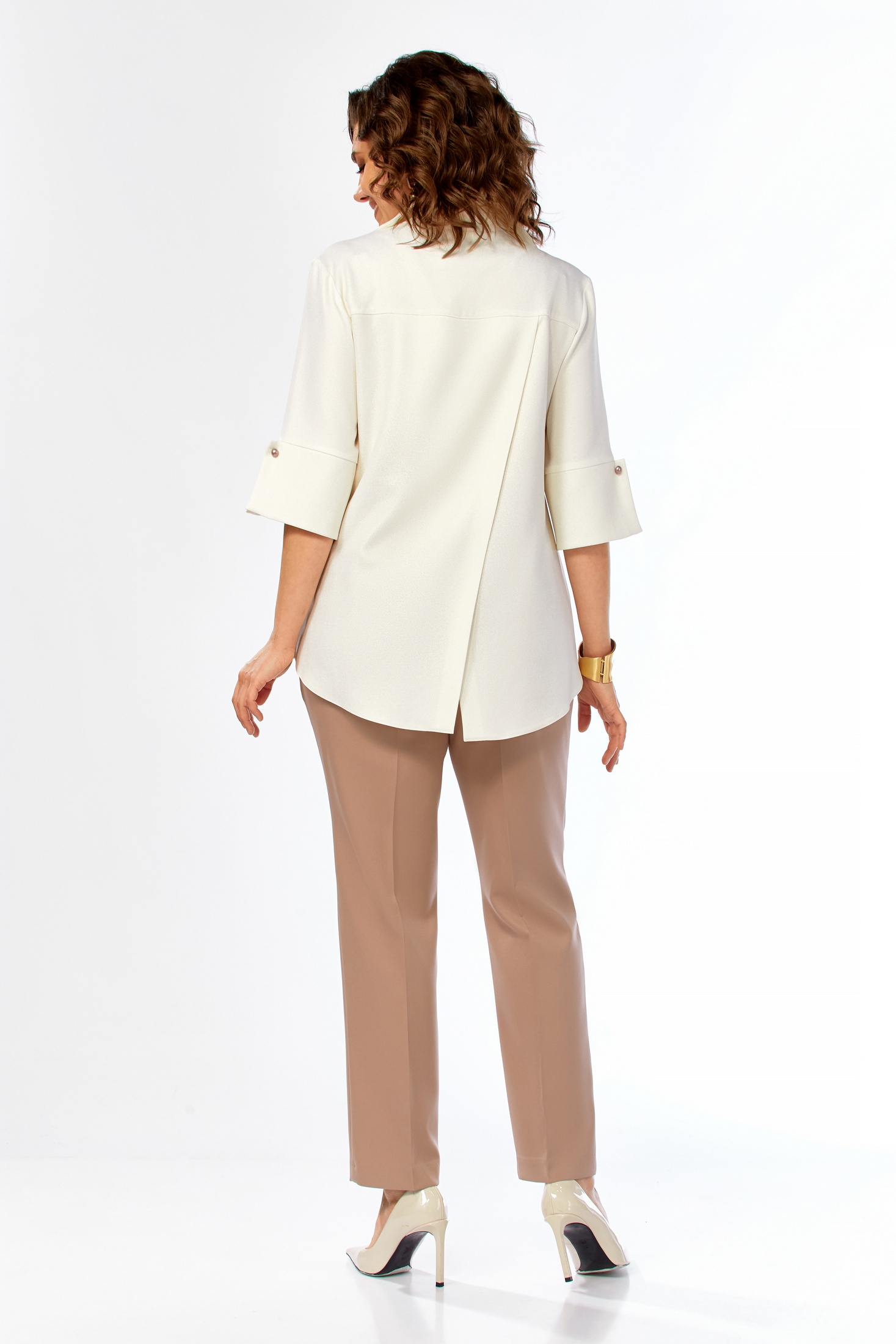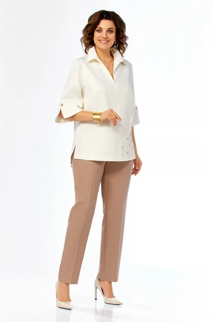 Костюм брючный 987 молочно-коричневый Ольга Стиль