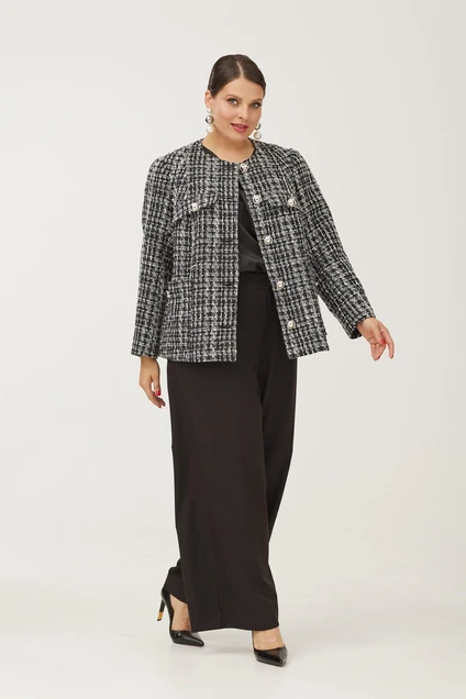 Комплект тройка женский из новой новогодней коллекции обрадует Вас посадкой и качеством пошива. Состоит из трёх элементов: жакета, брюк и топа. Классический жакет с круглым воротником на подкладке прямого кроя, имеет удобные функциональные карманы с клапанами, что добавляет практичности. Жакет на застёжке на декоративных пуговицах Рукава жакеты полноразмерные. Широкие брюки в стиле «палаццо» с высокой посадкой, на резинке и центральной застежке на петлю-пуговицу. По поясу- частично резинка, для удобства и функциональности в боковых швах карманы- «хулиганы». Топ с V-образным вырезом, спущенным плечом из атласной ткани. Оригинальный комплект oversize благодаря качественным лекалам хорошо садится по фигуре, не мнётся, удобен для повседневной носки и прекрасно выглядит! Ткань хорошо тянется и это позволяет вам комфортно себя чувствовать. Добавив нарядные аксессуары и туфли Вы будете королевой на любом мероприятии. Внимание! Цветопередача фотографий на Вашем устройстве может отличаться от реальности.