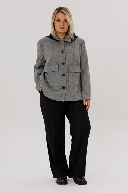 Этот стильный костюм – идеальный синтез классики и современной динамики. Твидовый жакет с эластаном на подкладке прямого кроя выполнен из мягкого твида с дизайном «елочка», с характерной для него структурой. Жакет с рубашечным воротником, на пуговицах. Съемный капюшон контрастного цвета добавляет образу актуальности, и возможность стилизовать образ по любому случаю. Брюки на резинке прямого кроя с высокой талией из трикотажа, что создает идеально выверенные пропорции и визуально удлиняет ноги. Для удобства и функциональности в боковых швах карманы- «хулиганы». Этот костюм –готовое решение для модного офиса, встречи с подругами, проулки по городу или поездки за город.