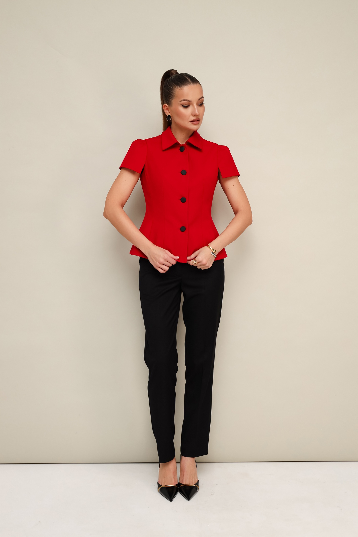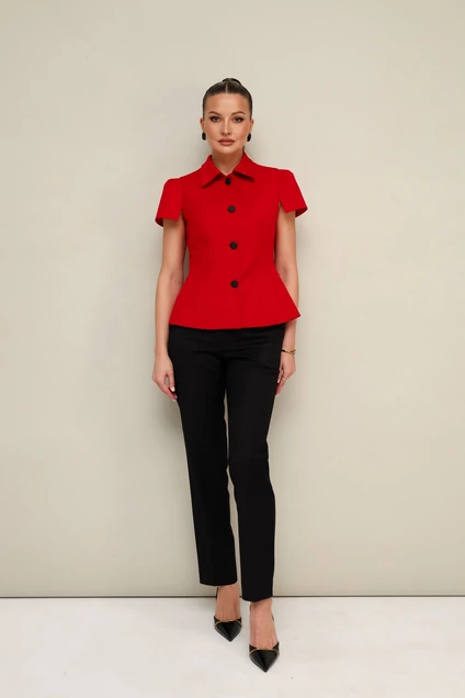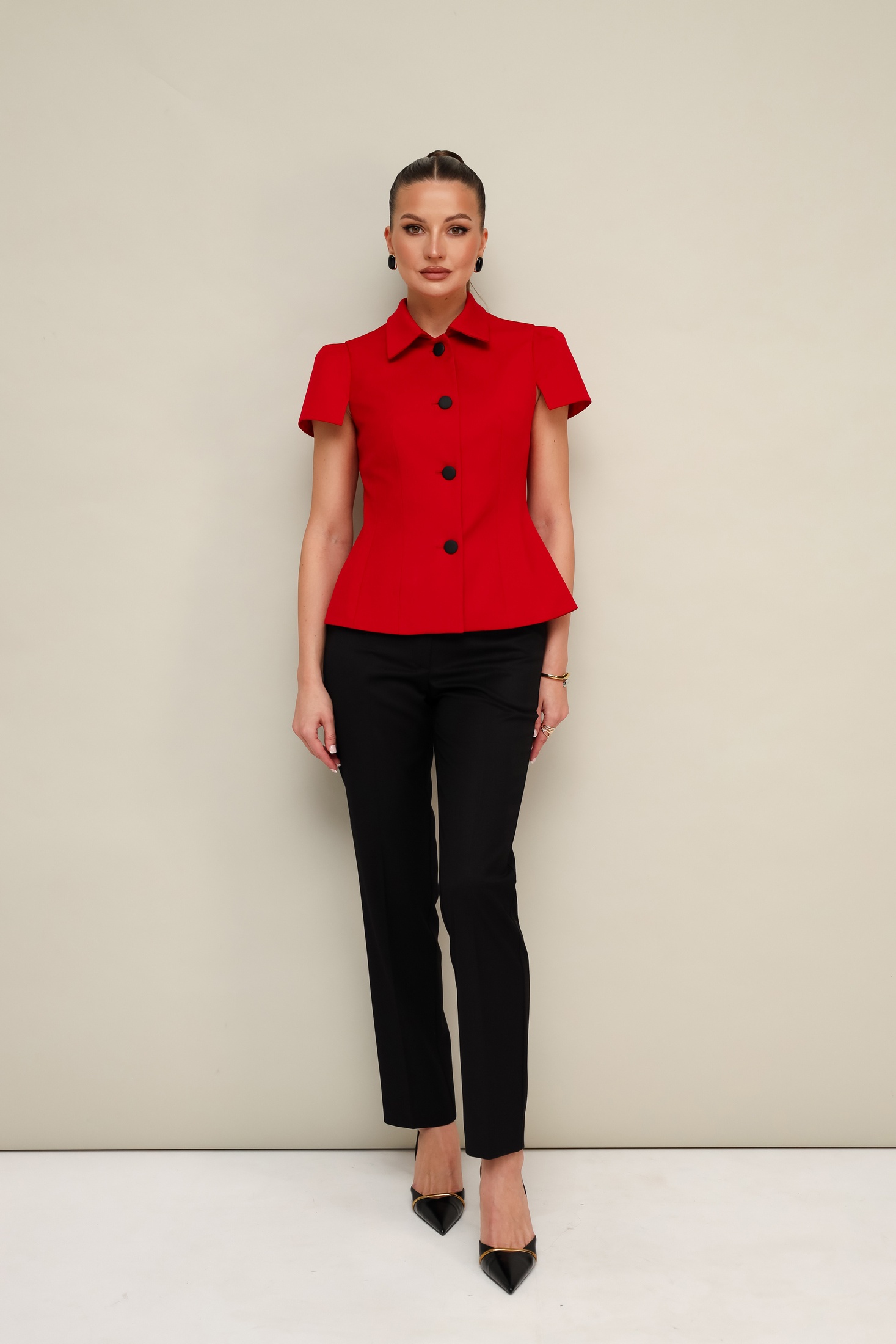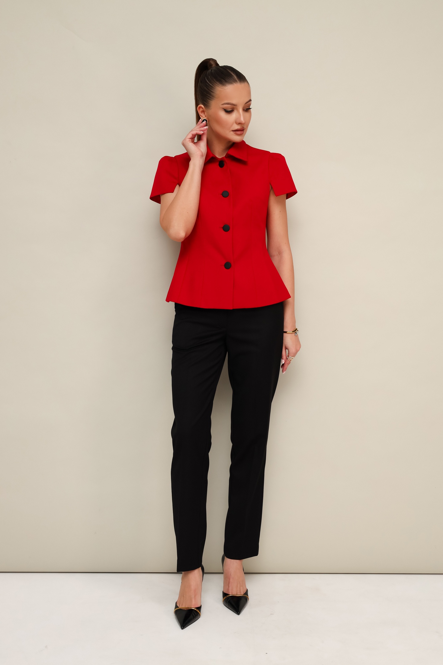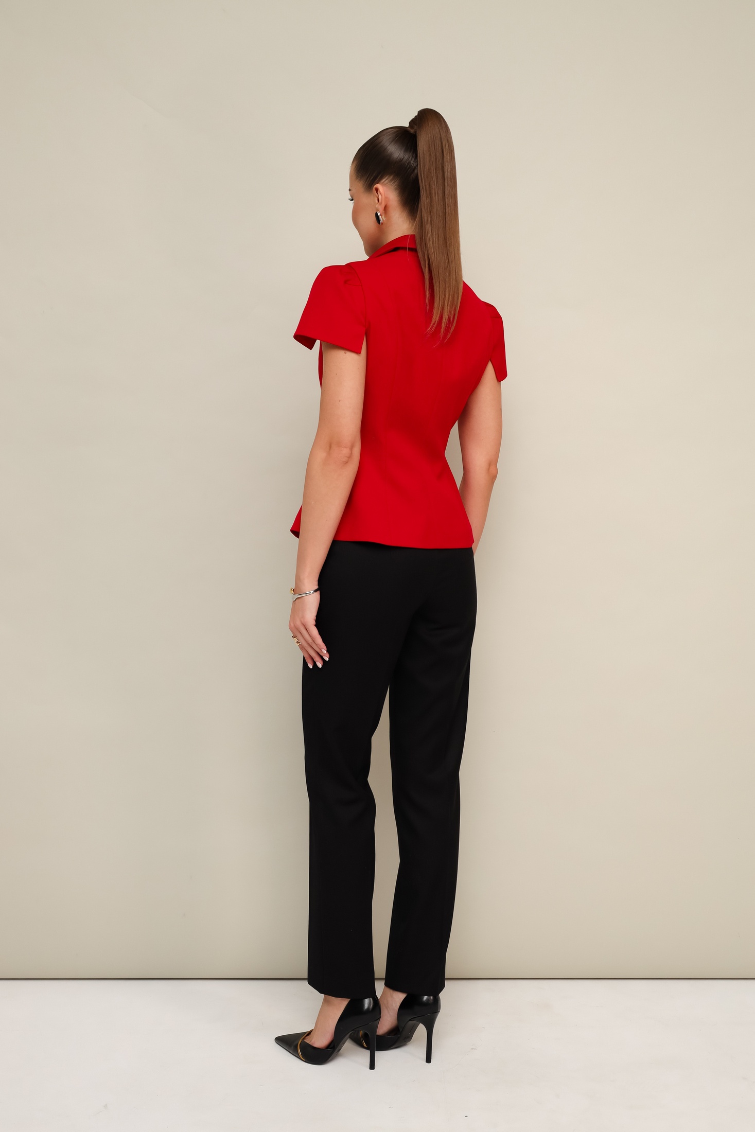 Костюм брючный 11-456 Pur Pur — изюминка вашего гардероба. Коллекция бренда Pur Pur предлагает стильный комплект, состоящий из жакета и брюк, выполненный из костюмной ткани, которая включает полиэстер, вискозу и спандекс, обеспечивая комфорт и эластичность. Жакет полуприлегающего силуэта с центральной застежкой на пуговицы, короткими рукавами и отложным воротником со стойкой подчеркнет вашу элегантность. Брюки прямого кроя с боковыми карманами и притачным поясом на резинке обеспечивают удобство и стиль. Идеальный для офиса и деловых встреч, костюм подходит для осенне-весеннего сезона. Классическое черно-красное сочетание добавит выразительности вашему образу.