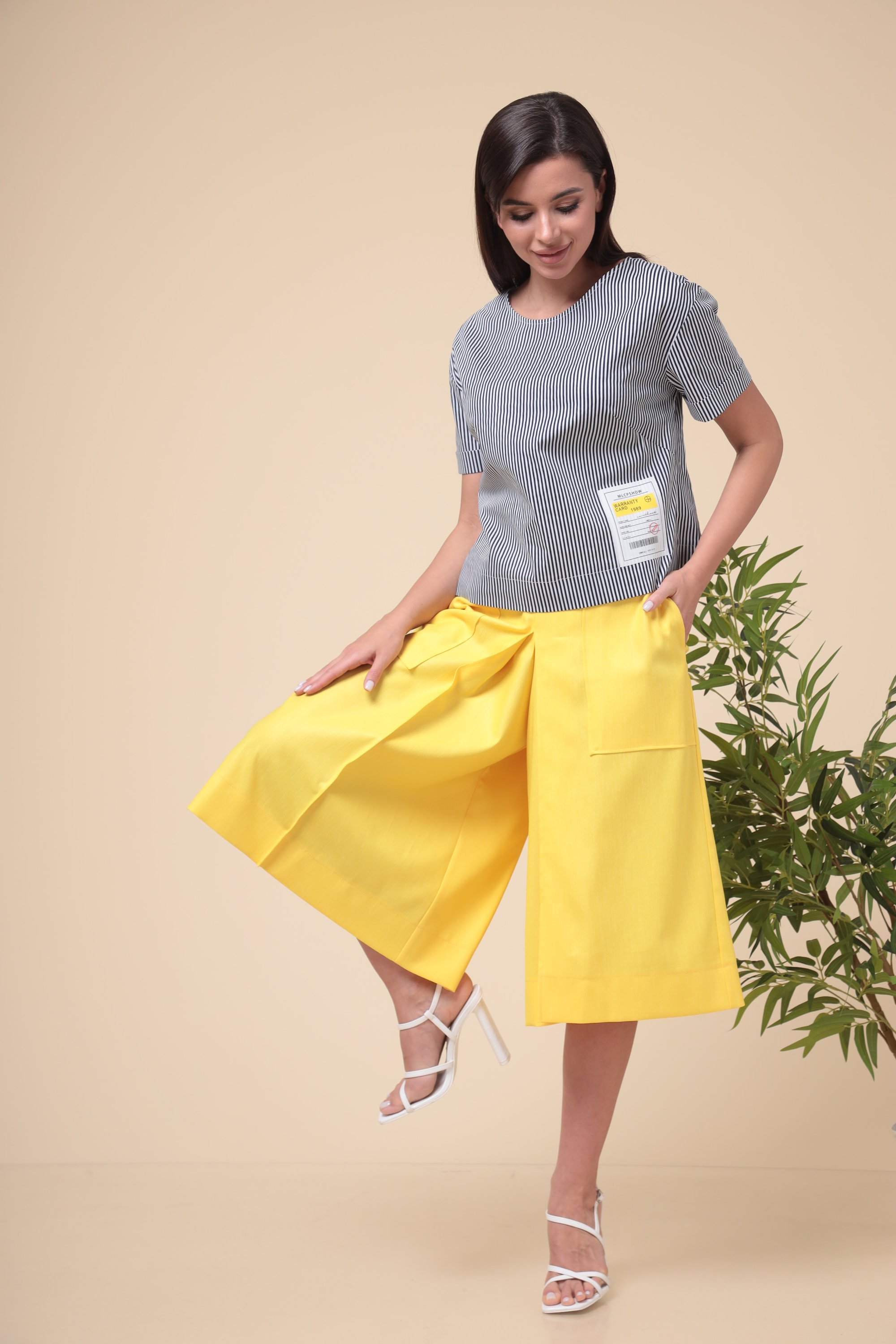 Костюм брючный 2-1971 полоска + желтый Romanovich style