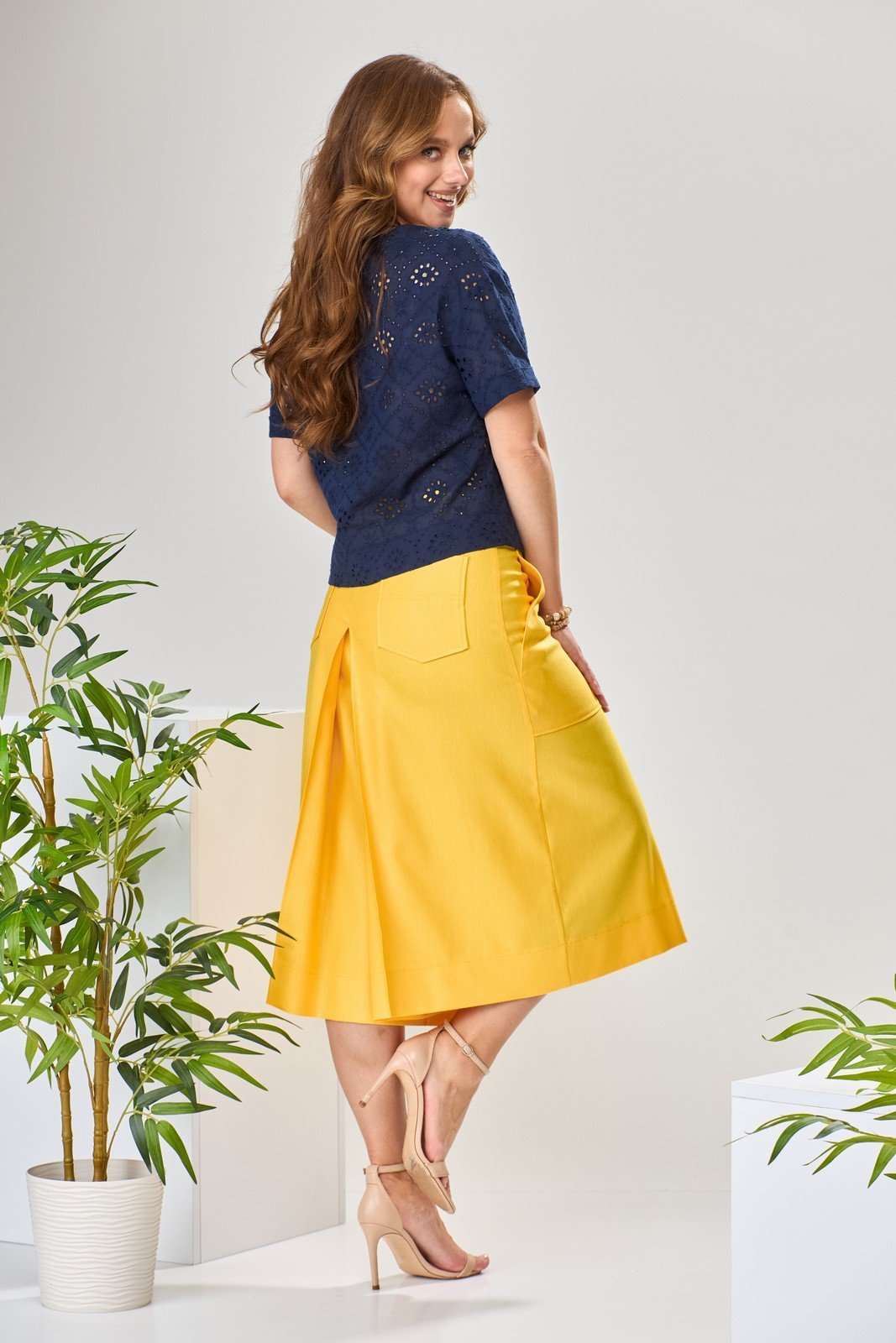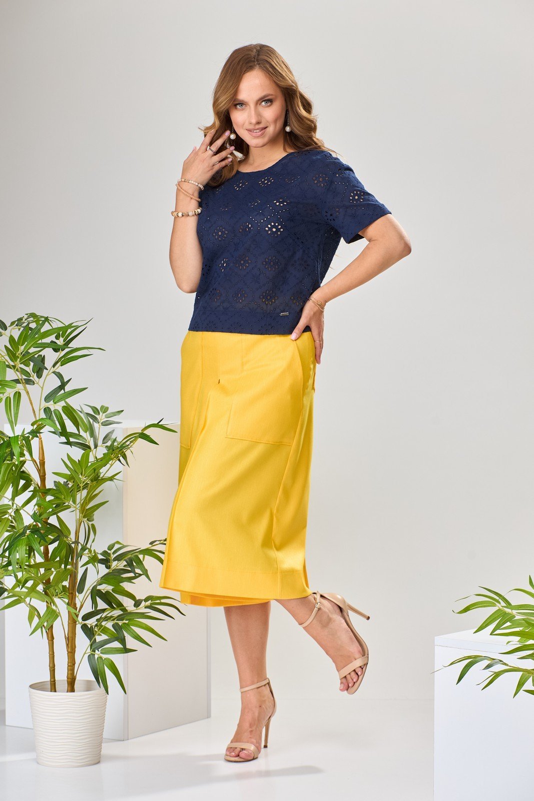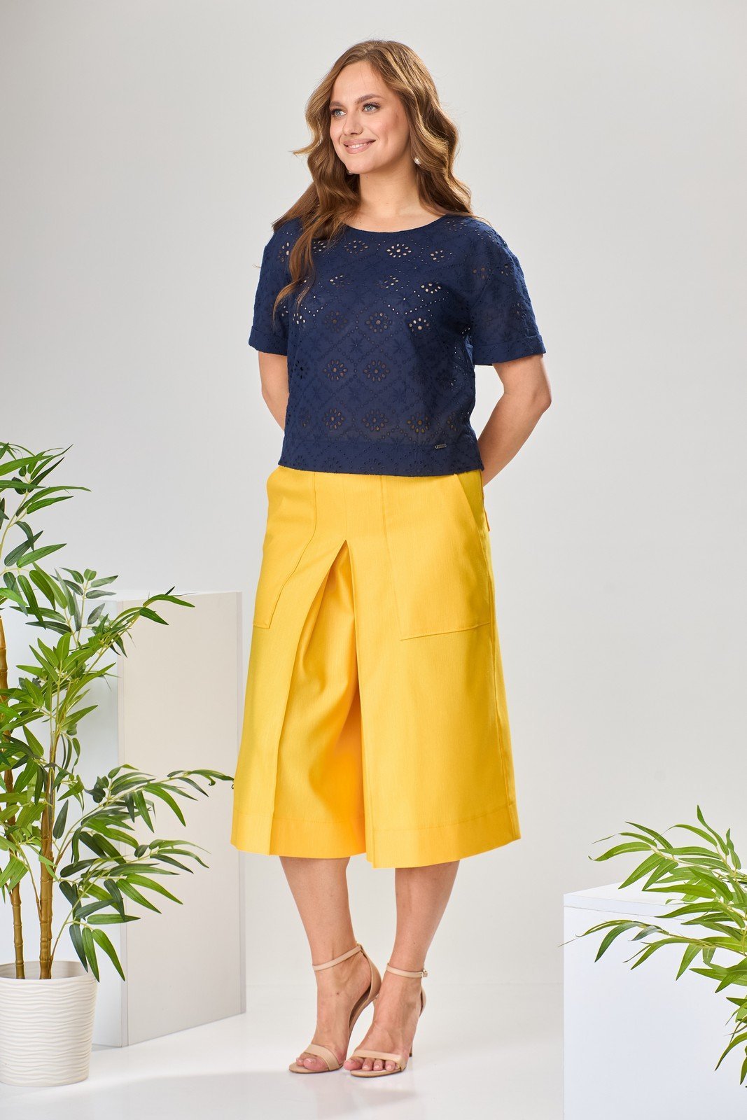 Костюм брючный 2-1971 синий + желтый-1 Romanovich style
