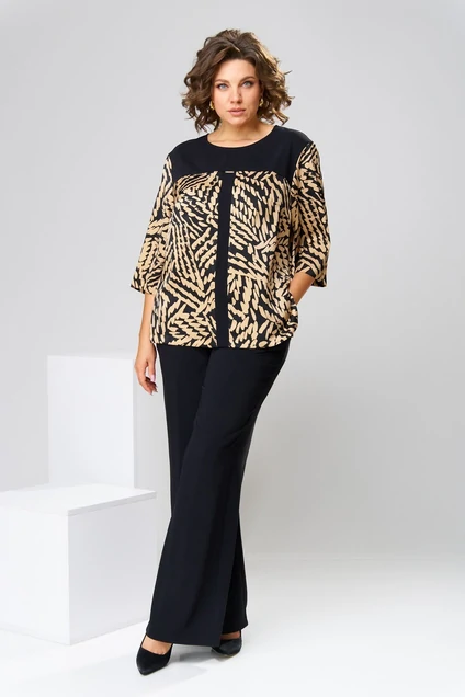 Костюм брючный 2-2731 чёрный + золото Romanovich style
