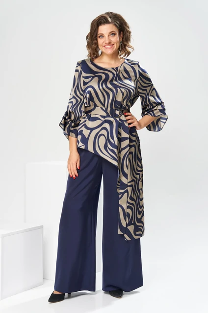 Костюм брючный 2-2750 дизайн + синий Romanovich style