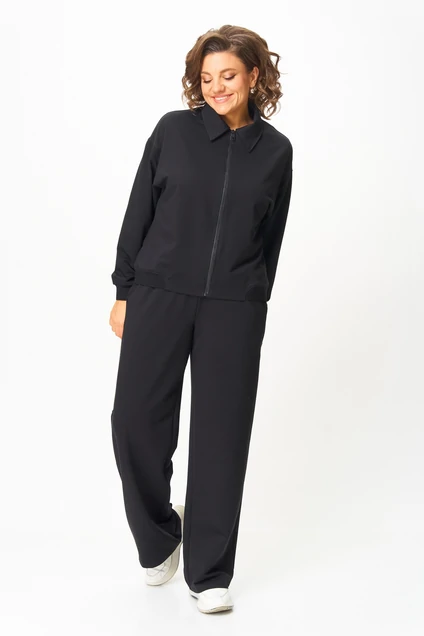 Костюм брючный 2095 черный STEFANY — это стильный комплект из джемпера и брюк, идеально подходящий для прохладного времени года. Коллекция бренда STEFANY предлагает брюки с прямым кроем и свободным силуэтом, дополненные наклонными карманами. Джемпер со спущенным рукавом оснащен воротником и молнией спереди, создавая комфорт на каждый день. Хлопковый материал с добавлением эластана обеспечивает мягкость и легкость движений. Черный цвет подчеркивает универсальность и классический стиль изделия. Резинки на манжетах и по низу джемпера добавляют практичности и тепла в осенне-зимний период.