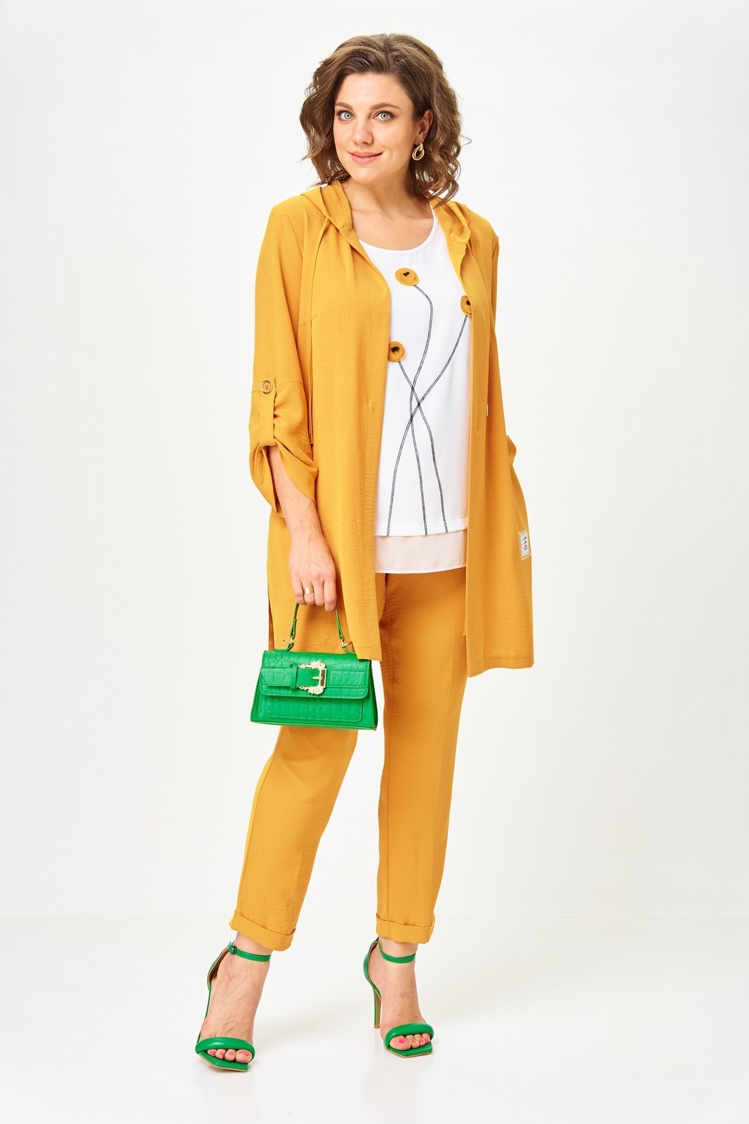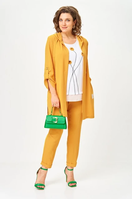 Костюм брючный 1527 горчица Svetlana Style — это выразительный выбор для стильных женщин. Коллекция бренда Svetlana Style представляет костюм из полиэстера, хлопка и спандекса, который не тянется, обеспечивая комфорт и легкость в носке. Трехпредметный комплект включает кардиган с капюшоном и патами на рукавах, полуприлегающий топ с аппликацией и прямые брюки на широкой резинке с зауженным низом. Костюм с карманами и разрезами в боковых швах идеально подходит для весеннего и осеннего сезонов, предлагая повседневный стиль. Горчичный цвет добавляет яркость и свежесть в любой гардероб. Длина кардигана составляет 85 см, рукава — 43 см, топа — 70 см, брюк — 92 см. Изделие предназначено для создания комфортного и стильного образа на каждый день.