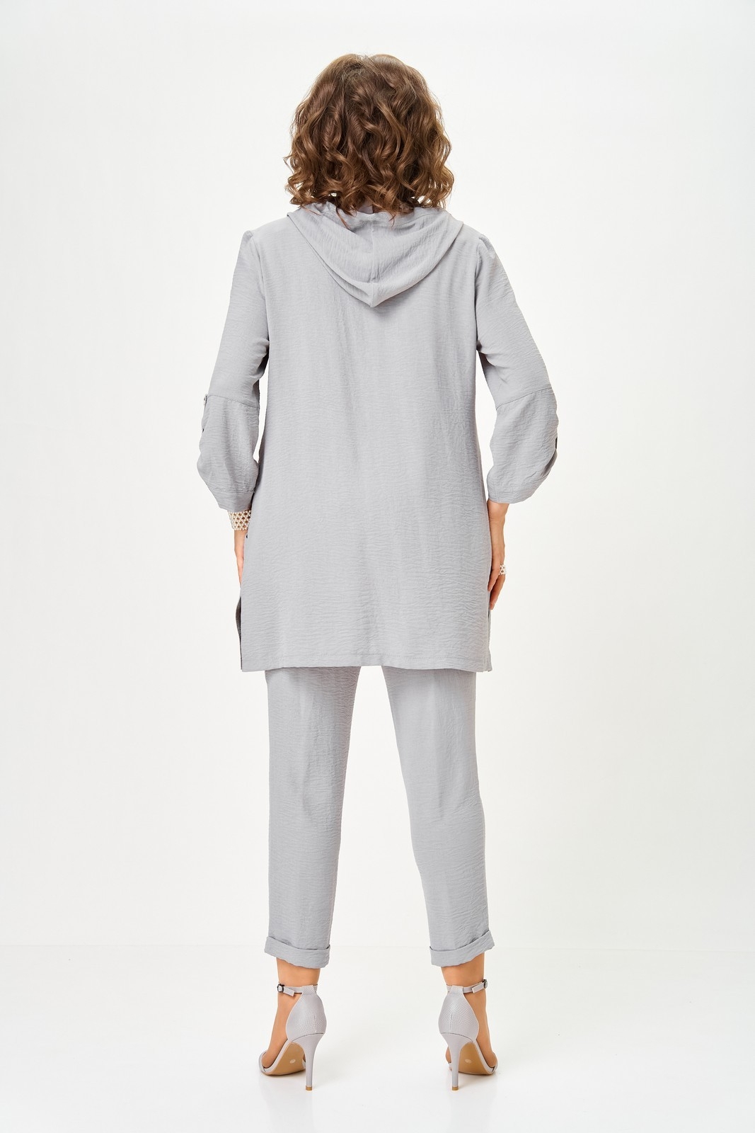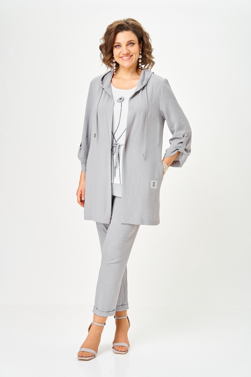 Костюм брючный 1527 серый Svetlana Style предлагает уникальное сочетание стиля и комфорта. Коллекция бренда Svetlana Style включает в себя женский трехпредметный костюм, состоящий из кардигана, топа и брюк. Кардиган прямого силуэта с втачным рукавом и капюшоном со шнурком обеспечивает практичность и стиль. Боковые карманы и разрезы добавляют функциональности. Топ, декорированный аппликацией, придает оригинальности. Брюки прямые, зауженные книзу с отворотом, на широкой резинке для удобной носки. Ткань костюма, состоящая из полиэстера, хлопка и спандекса, не тянется, но обеспечивает комфорт в весенний и осенний сезоны. Серый цвет делает комплект универсальным для любого случая. Длина кардигана 85 см, топа 70 см, брюк 92 см, что завершает стильный образ.