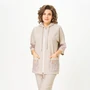 Жакет прямого силуэта. Застежка на молнию. По горловине капюшон на кулисе. По полочкам накладные карманы. Карманы, вставка рукава и капюшон выполнены из гипюра. Низ жакета на кулисе.