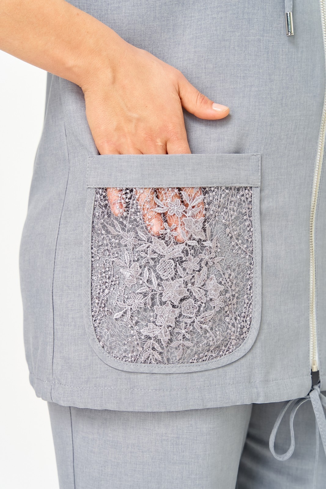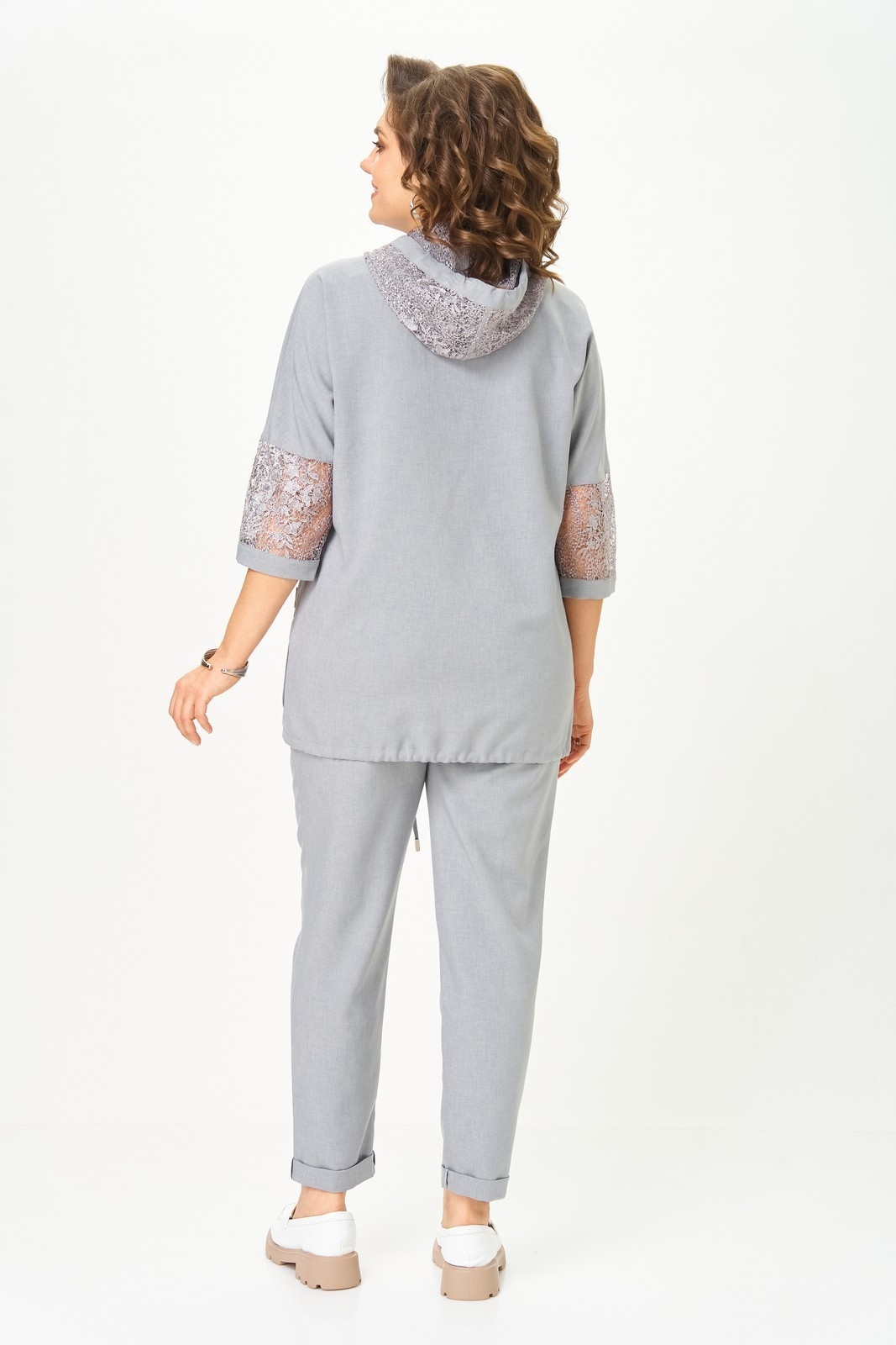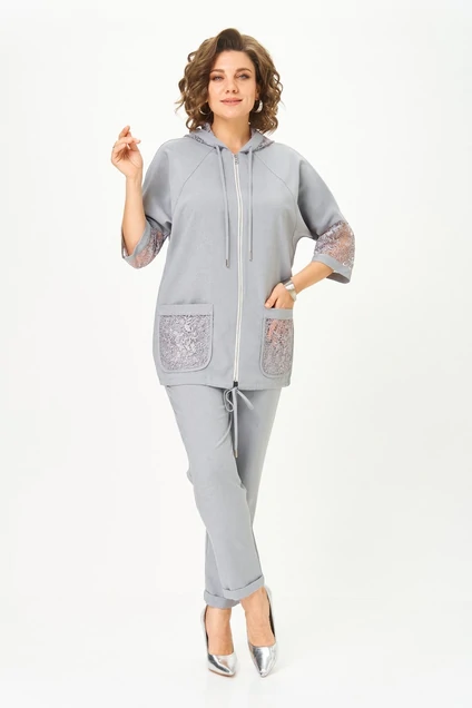 Костюм брючный 1577 светло-серый Svetlana Style — это сочетание стиля и комфорта. Коллекция бренда Svetlana Style предлагает этот женственный костюм, состоящий из жакета и брюк. Жакет прямого силуэта с капюшоном на кулисе и молнией обеспечивает удобство и стиль. Особенностью модели является гипюровая отделка на карманах и капюшоне. Брюки зауженные книзу с отворотом и карманами на боковых швах дополняют образ, а их пояс на резинке добавляет комфорта. Светло-серый цвет делает костюм универсальным для любого сезона, а длина жакета по центру спинки составляет 81 см. Длина рукава от высшей точки горловины до низа 62 см. Длина брюк 89 см. Изделие выполнено из вискозы, полиэстера и спандекса, что обеспечивает мягкость и эластичность. Идеально подходит для повседневного и прогулочного стиля.