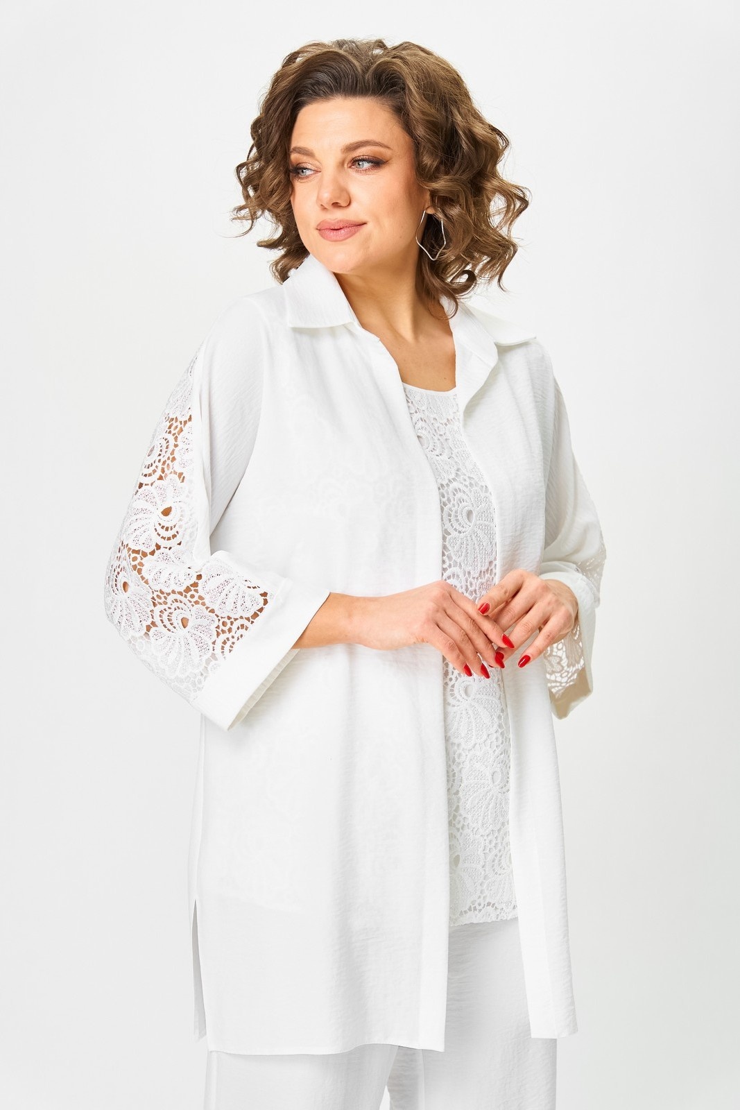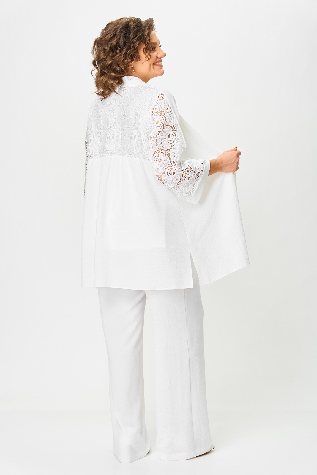 Костюм брючный 2025 белый Svetlana Style — это элегантная модель из коллекции бренда Svetlana Style. Выполнен из сочетания полиэстера, вискозы и спандекса, что обеспечивает комфорт и легкость в носке. Жакет прямого силуэта с цельнокроенным рукавом летучая мышь и отложным воротником на стойке добавляет образу легкости и изящества. Особенности кроя включают разрезы по бокам и отложную манжету на рукавах. Свободный крой брюк с поясом на резинке обеспечивает удобство и стильность. Такой костюм подходит для любого времени года и идеально впишется в гардероб как для офисного, так и для повседневного стиля. Белый цвет придаст вашему образу свежесть и лёгкость. Длина жакета по спинке составляет 79 см, топа — 67 см, брюк — 104 см.