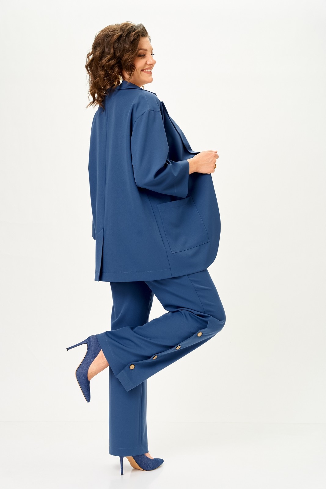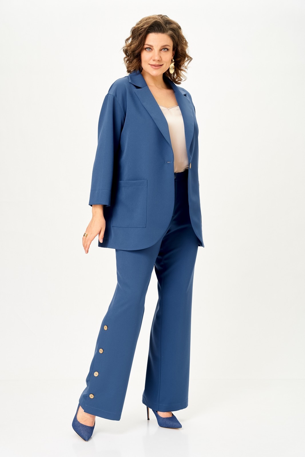 Костюм брючный 2340 индиго Svetlana Style — это выбор для стильного и комфортного образа. Коллекция бренда Светлана Стайл предлагает жакет свободного прямого силуэта с втачным рукавом и отложным воротником, застегивающийся на одну пуговицу. Важно отметить наличие двух накладных карманов и шлицы в среднем шве спинки. Брюки прямого силуэта оснащены декоративной застежкой и удобными карманами, а также регулируемой посадкой на талии с помощью резинки. Изделие выполнено из полиэстера, вискозы и спандекса, что обеспечивает комфорт и легкость. Этот костюм идеален для офисного использования в осенний и весенний сезоны благодаря своему универсальному синему цвету. Длина жакета по спинке составляет 75 см, рукава — 65 см, а брюк — 105 см.