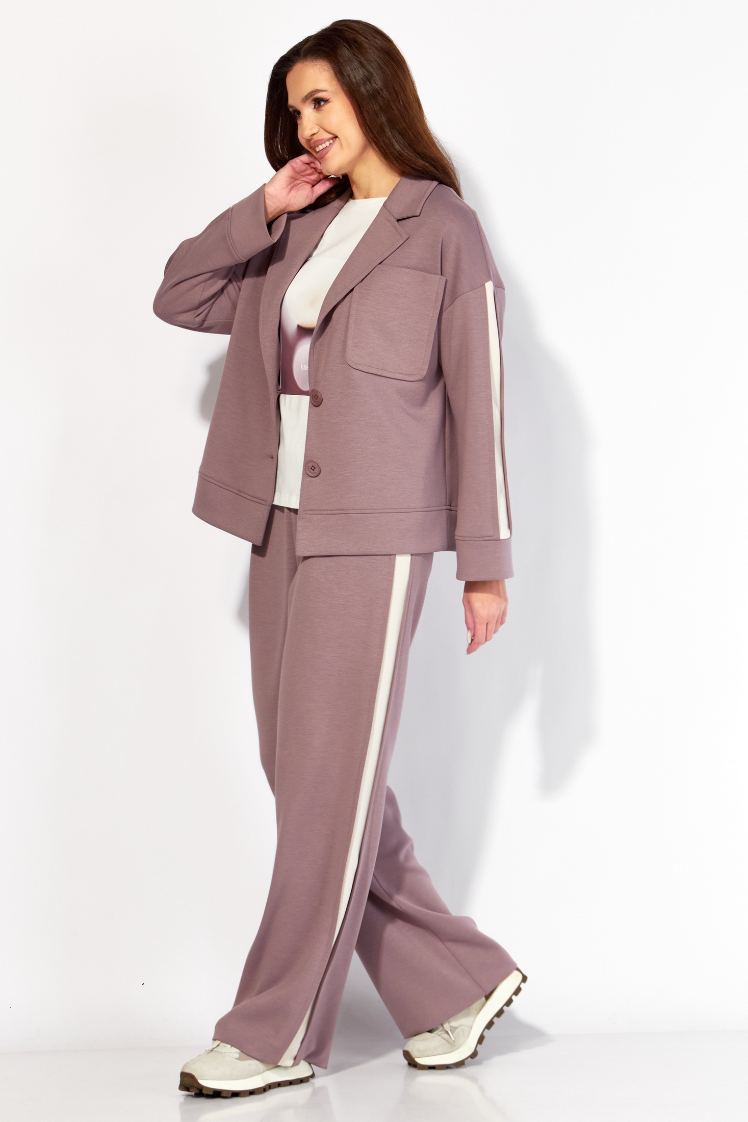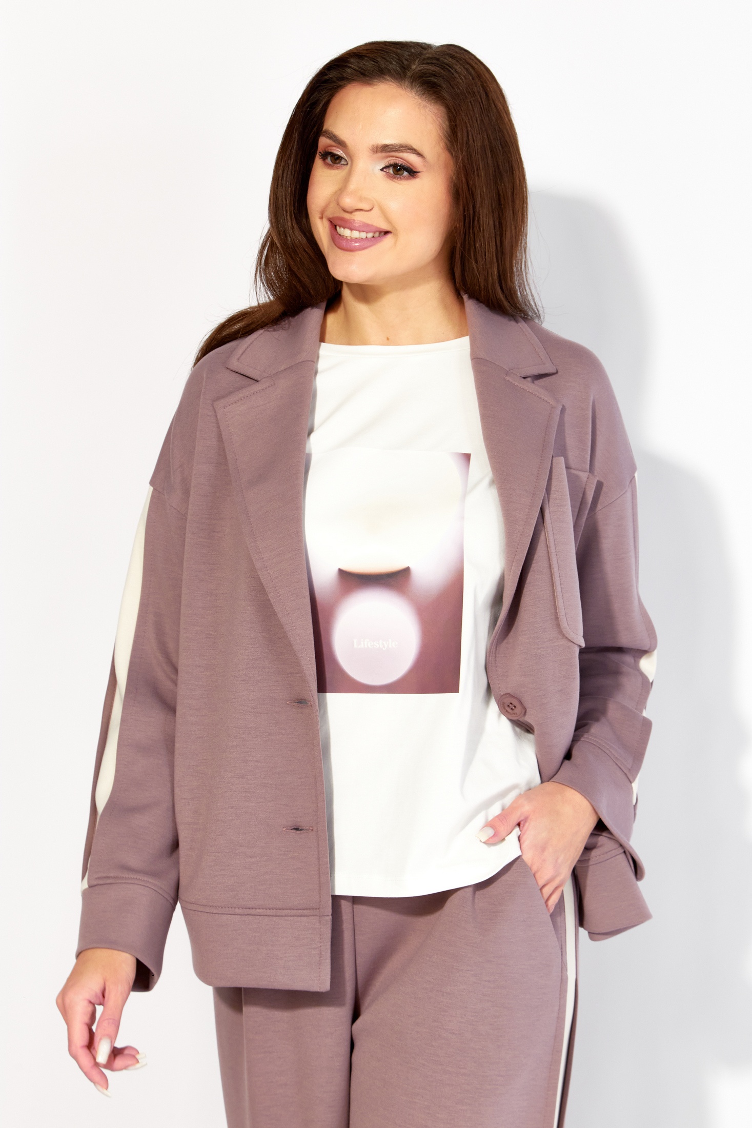 Костюм брючный 1420 тауп ТАиЕР — идеальный выбор для современного гардероба. Коллекция бренда ТАиЕР предлагает стильный комплект, состоящий из жакета, топа и брюк. Изготовленный из ткани TENSEL, жакет и брюки обладают мягкостью и комфортом. Жакет прямого силуэта с длинным рукавом, украшенным отделочным лампасом, дополняется отложным воротником и накладным карманом. Брюки с наклонными карманами и поясом на резинке обеспечат удобство на каждый день. Топ из хлопкового трикотажа с короткими рукавами и красочным принтом идеально подходит для весенне-летних прогулок. Лёгкий тауповый цвет и эффектный дизайн делают этот костюм универсальным для повседневного и делового стиля.