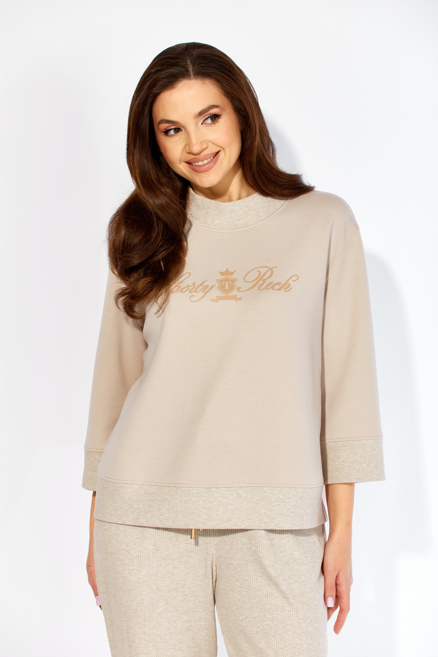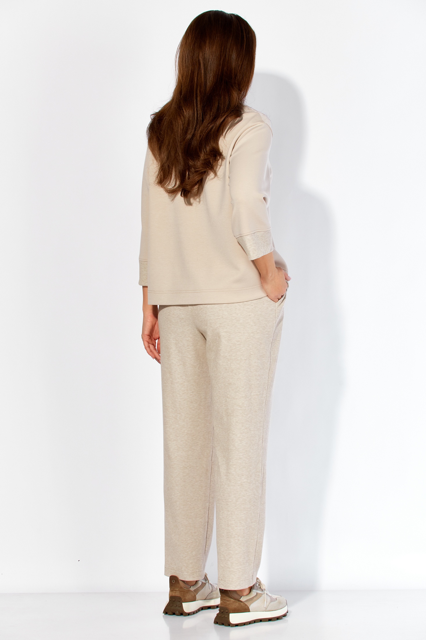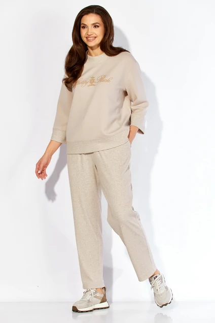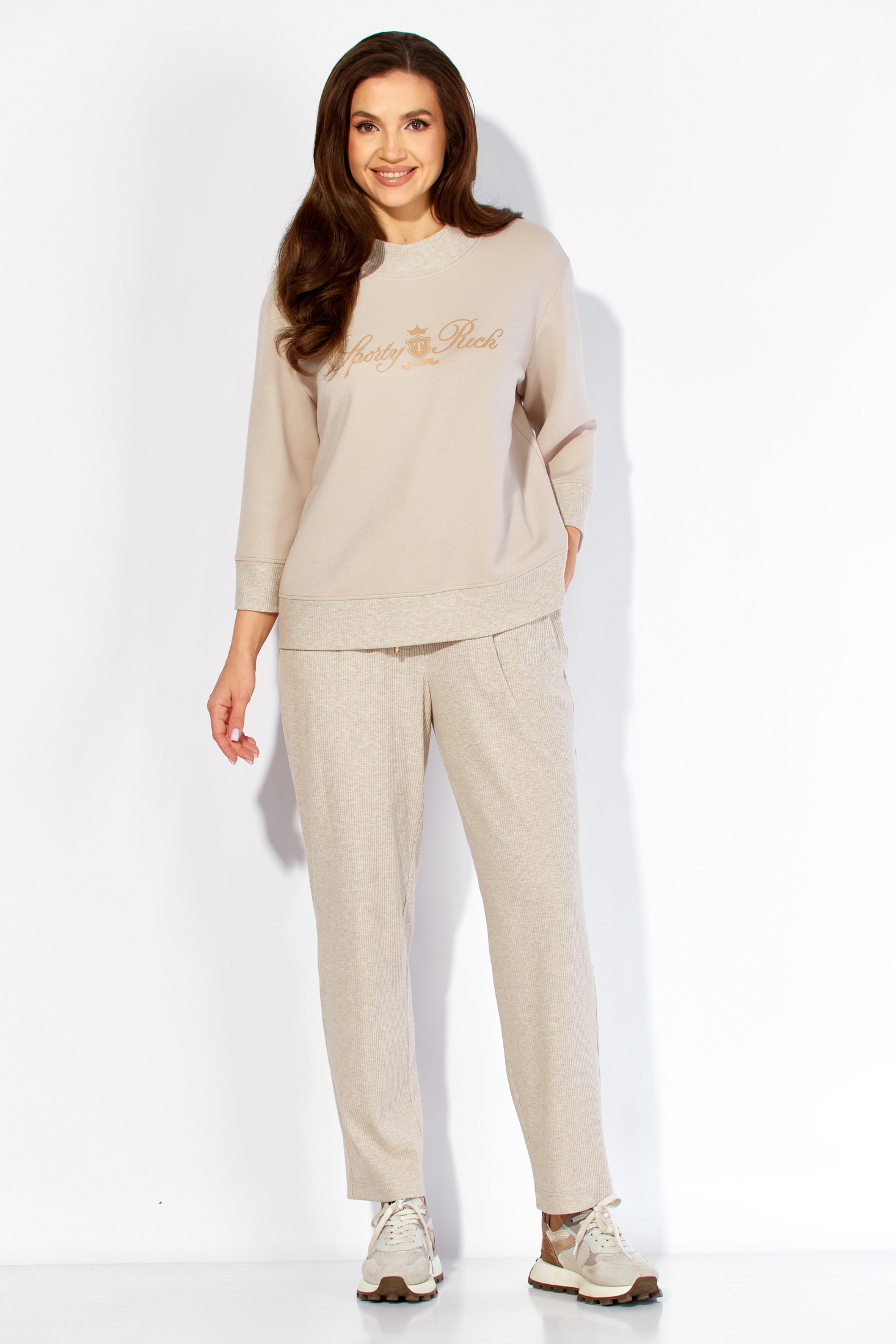 Костюм брючный 1427 песочный ТАиЕР — изысканное сочетание стиля и комфорта. Коллекция бренда ТАиЕР предлагает комплект из джемпера и прямых брюк, выполненный из двух видов трикотажного полотна. Джемпер с рукавами 3/4 и спущенной линией плеча украшен принтом, а его горловина круглой формы выполнена с широкой подрезной бейкой. По низу изделия и манжетам использовано отделочное трикотажное полотно. Брюки с наклонными карманами и притачным поясом с резинкой и кулисой добавляют практичности. Цвет костюма — песочный, что идеально подходит для весеннего сезона и повседневной носки.