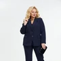 Жакет из костюмной ткани на подкладке, полуприлегающего силуэта, с отложным воротником и лацканами, с центральной бортовой застежкой на петли и пуговицы. Перед с талиевыми вытачками, прорезными карманами с клапаном. Спинка со средним и рельефными швами. Рукав втачной двухшовный. Воротник отложной пиджачного типа.