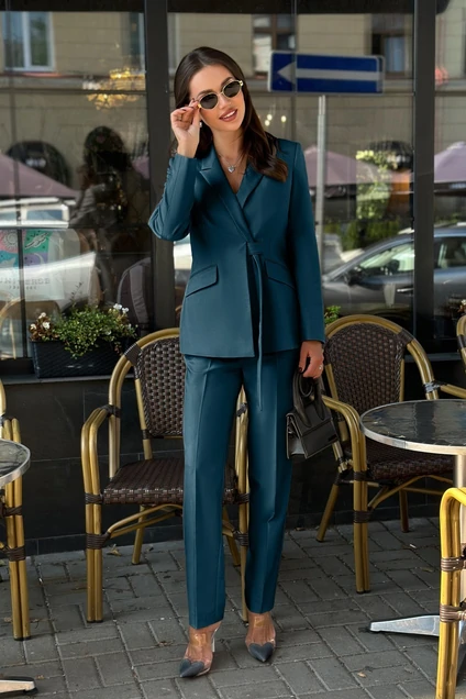 Костюм брючный 154 зеленая-бирюза Ольга Стиль
