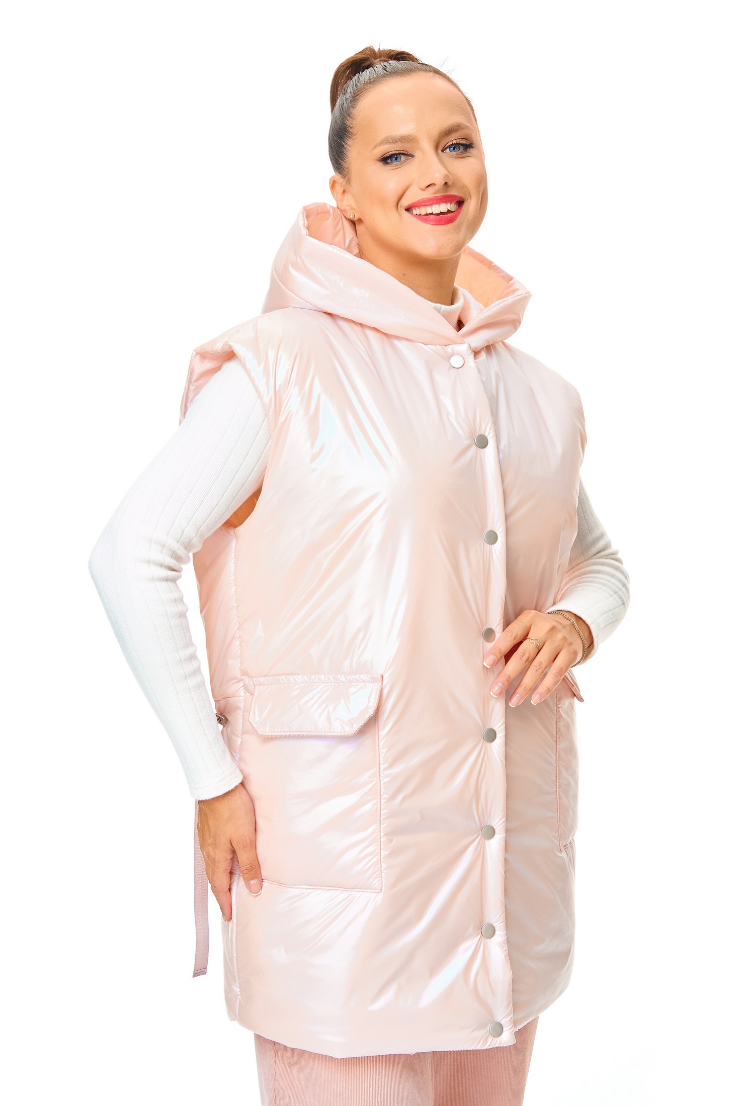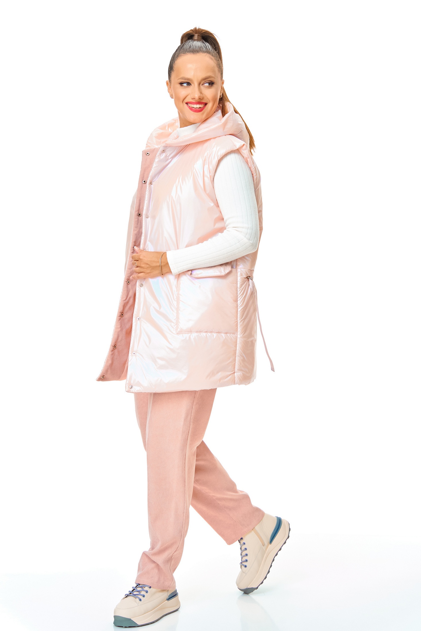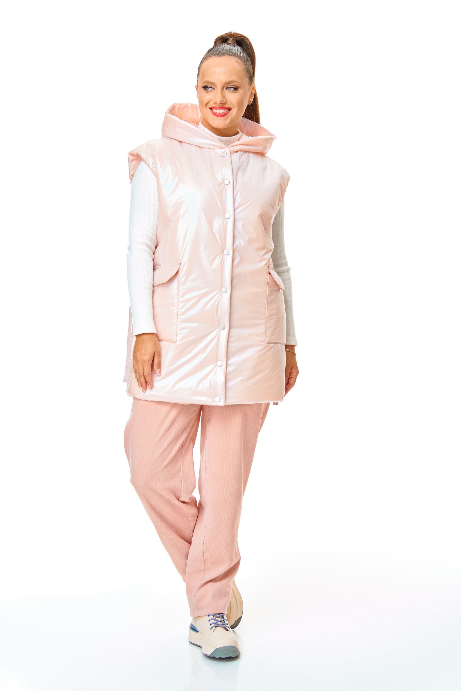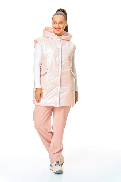 Костюм брючный 7735 розовый Tender and nice – это идеальный выбор для ранней весны. Коллекция бренда Tender and nice представляет комплект из удлиненного жилета и брюк в нежном розовом цвете. Изготовленный из бархатистого микро-вельвета, костюм сочетает в себе комфорт и стиль. Жилет с глубоким капюшоном, легким утеплителем из синтепона и застежкой на кнопки обеспечивает дополнительное тепло и защиту от ветра. Накладные карманы с клапаном и регулируемый низ на кулиске добавляют функциональности. Брюки с высокой посадкой и эластичным поясом гарантируют удобную посадку и свободу движений. Длина жилета составляет 78 см, а длина брюк – 93 см. Этот костюм в пастельных тонах прекрасно впишется в повседневный гардероб, предлагая комфорт и стиль во время прогулок и неформальных встреч.