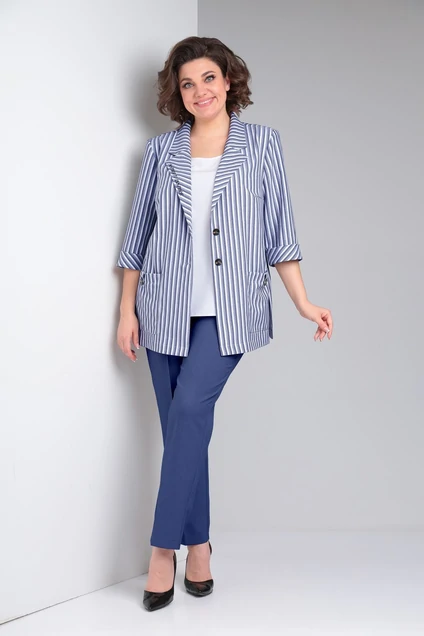 Костюм брючный 371 голубой Tensi сочетает в себе стиль и комфорт, идеально подходя для офисной работы и свободного времени. Коллекция бренда Tensi предлагает трёхпредметный комплект, включающий жакет, брюки и блузу. Жакет полуприлегающего силуэта с накладными карманами и стильным принтом на лацкане, его длина от центра горловины спинки до низа составляет 72,5-73 см, а длина рукава — 43 см. Брюки прямого кроя с длиной по боковому шву 99 см, слегка заужены к низу, с функциональными карманами. Блуза с округлой горловиной и без рукавов дополняет образ, её длина от центра горловины спинки — 64-64,5 см. Комплект выполнен из полиэстера и вискозы, обеспечивая комфорт и хорошую посадку. Основной цвет костюма — голубой, что делает его универсальным выбором для любого сезона и случая.