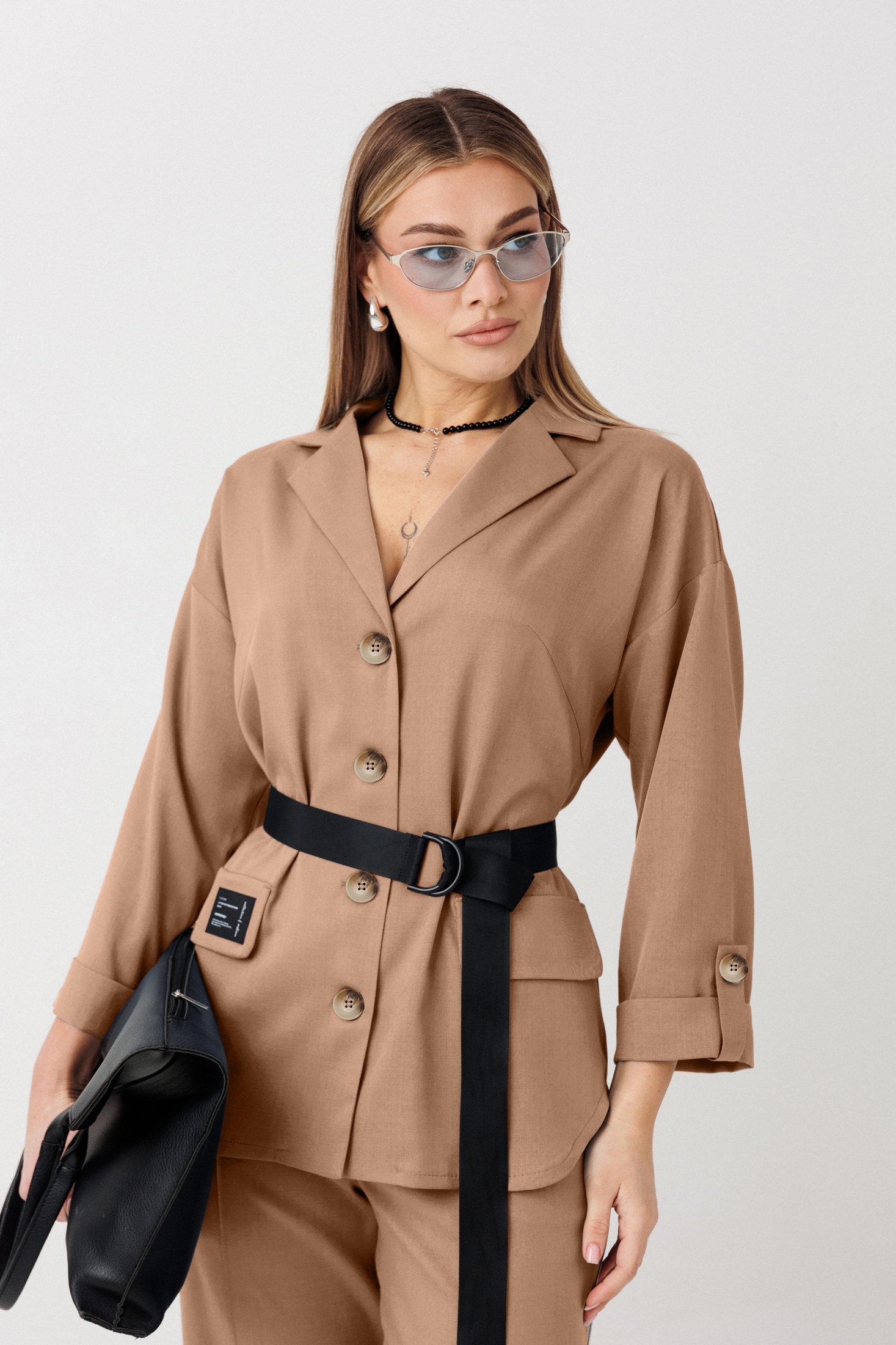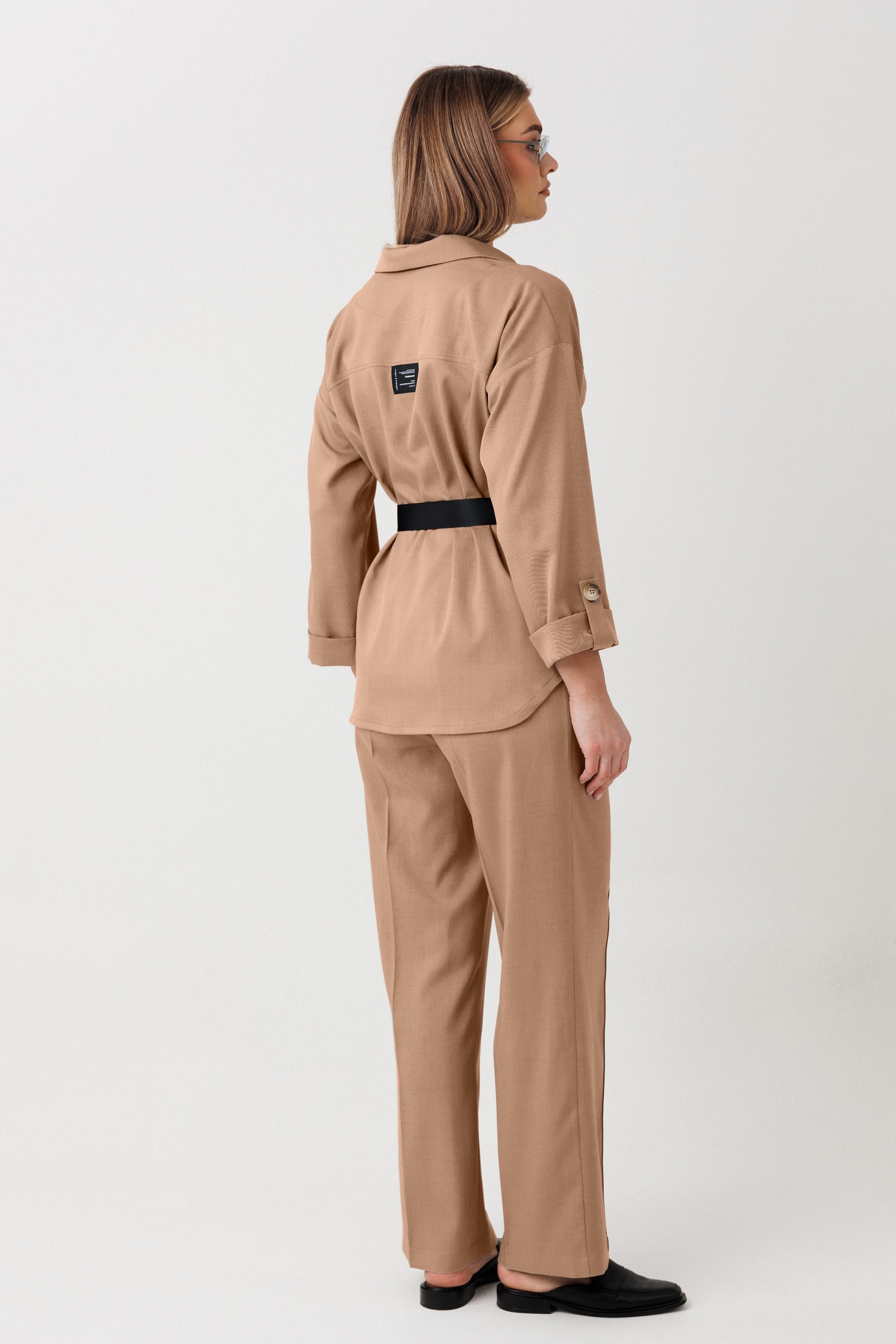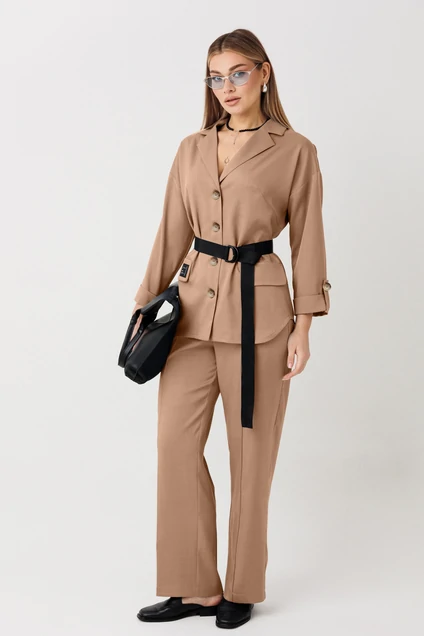 Костюм брючный 2443 песочный VeritaModa предлагает гармоничное сочетание современного стиля и комфорта. Коллекция бренда VeritaModa представила этот комплект двойку, состоящий из свободного жакета и классических прямых брюк. Жакет с пониженной линией плеча и манжетами на патах дополнен декоративными клапанами и застежкой на пуговицы. Брюки на резинке обеспечивают комфортную посадку, а карманы в боковых швах добавляют практичности. Песочный цвет костюма подчеркивает его универсальность, делая его идеальным для офисного и повседневного использования. Материал из вискозы и полиэстера обеспечивает прочность и комфорт на протяжении всего дня, а декоративный пояс придает завершенность образу. Этот костюм станет вашим идеальным выбором для теплого сезона и деловых встреч.