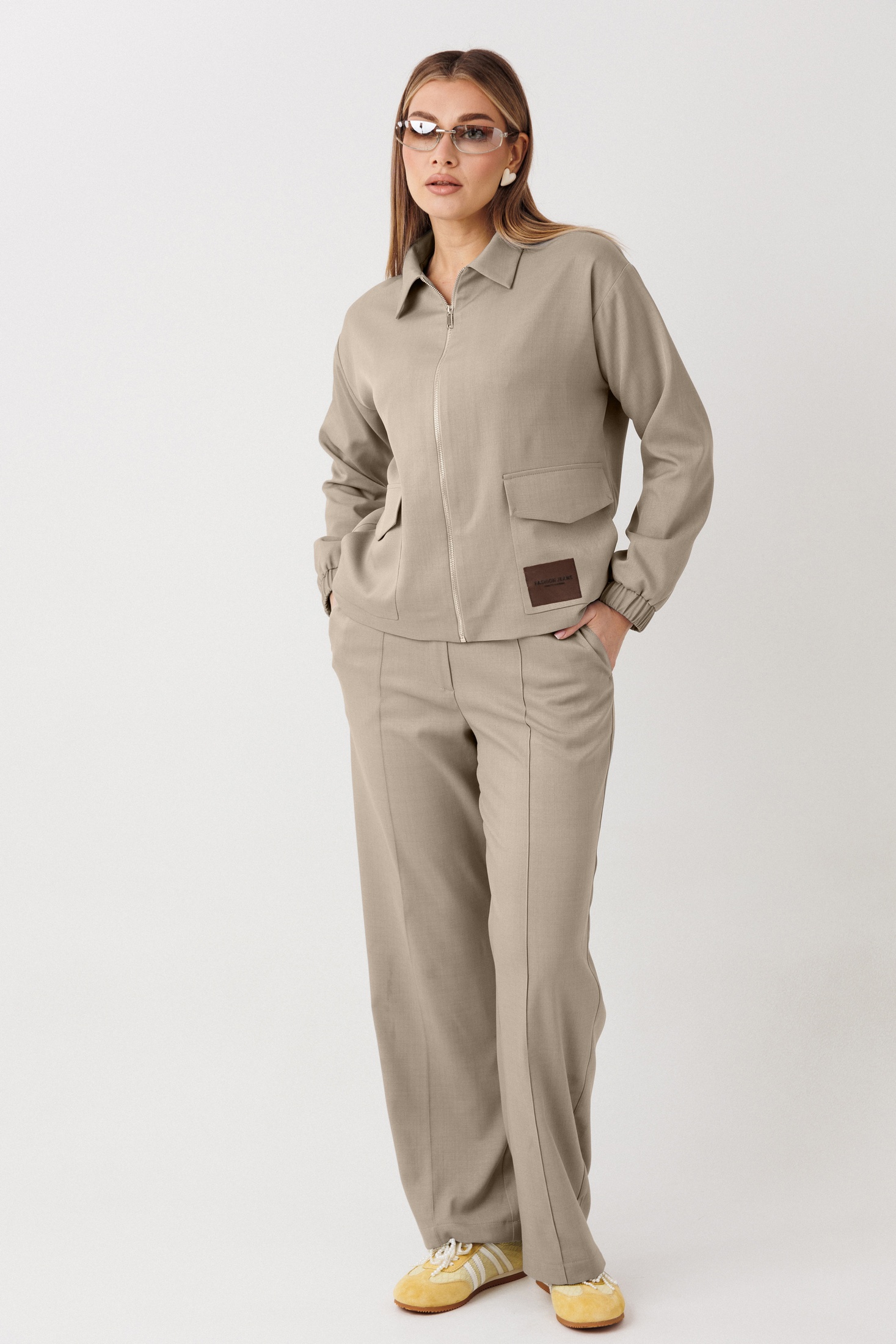 Костюм брючный 2444 беж VeritaModa — это стильное сочетание бомбера и брюк в коллекции бренда VeritaModa. Изготовленный из материала, состоящего на 33% из вискозы, он обеспечивает комфорт и легкость в носке. Бомбер прямого силуэта на подкладке с отложным воротником и длинными спущенными рукавами на манжете. Практичные функциональные карманы и застежка на молнию делают модель удобной для повседневного использования. Благодаря сборке на резинку по низу спинки, он отлично сидит на любой фигуре. Классические прямые брюки по переду со стрелками и карманами в боковых швах идеально подходят для создания делового образа. Пояс на резинке добавляет комфорта. Бежевый цвет и лаконичный стиль делают этот костюм универсальным решением для офиса и городских прогулок в весенний сезон.