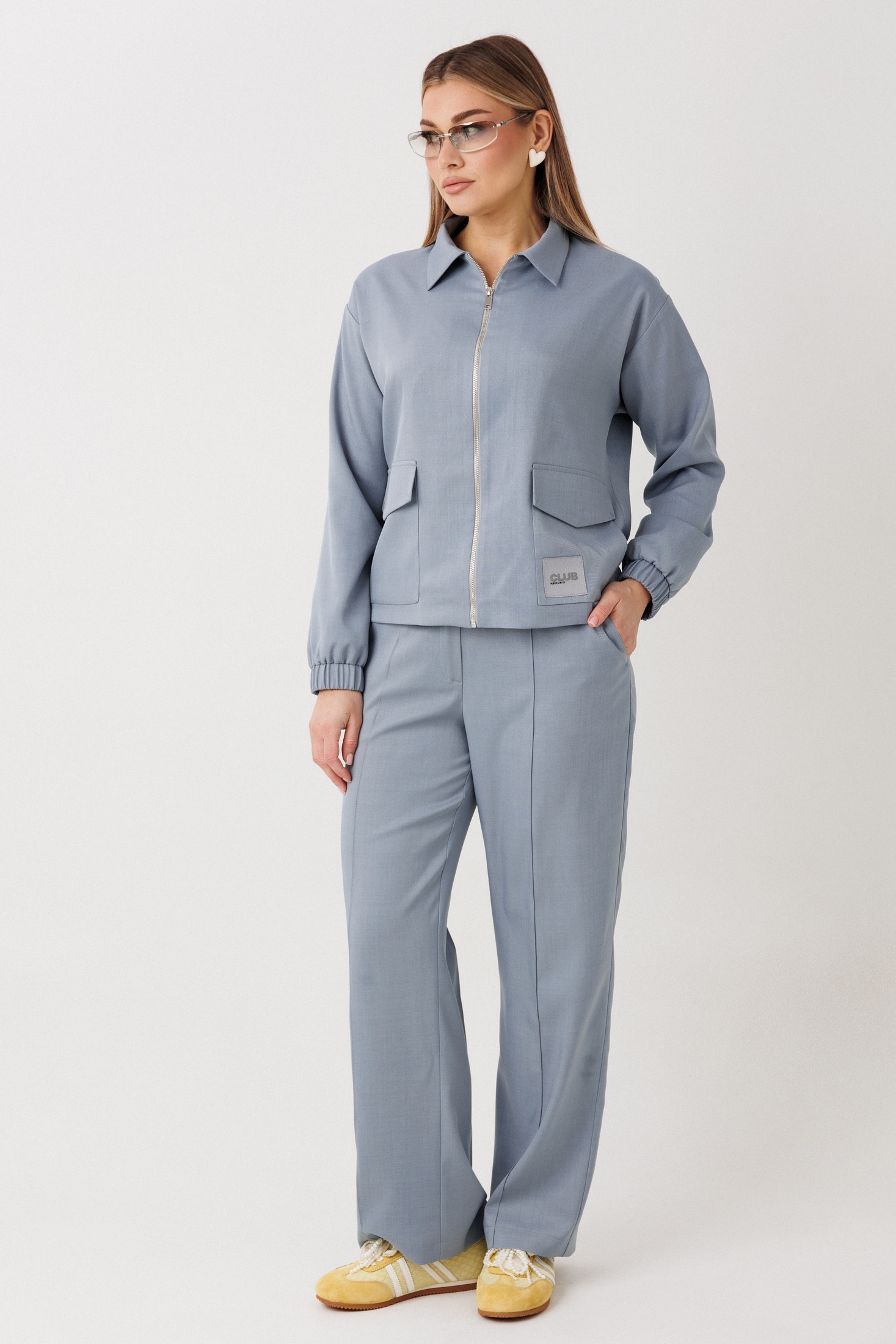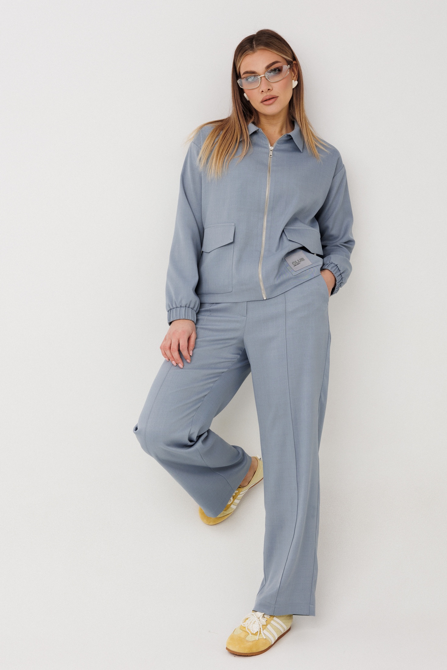 Костюм брючный 2444 голубой VeritaModa представляет собой элегантный и универсальный ансамбль из коллекции бренда VeritaModa. Изготовленный из ткани, сочетающей полиэстер и вискозу с добавлением спандекса, он обеспечивает комфорт и практичность. Стильный голубой бомбер прямого силуэта на подкладке с отложным воротником украшен двумя функциональными карманами и застёжкой на молнию, дополняя современный повседневный стиль. Спущенные длинные рукава на манжетах добавляют комфорта, а сборка на резинке по низу спинки обеспечивает идеальную посадку. Классические прямые брюки с карманами в боковых швах и стрелками создают строгий и завершённый вид, тогда как пояс на резинке обеспечивает удобство при ежедневной носке. Идеально подходит для весенне-летнего сезона.