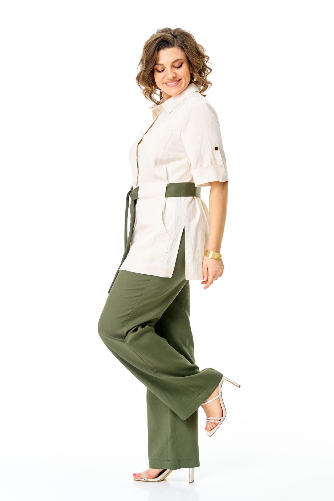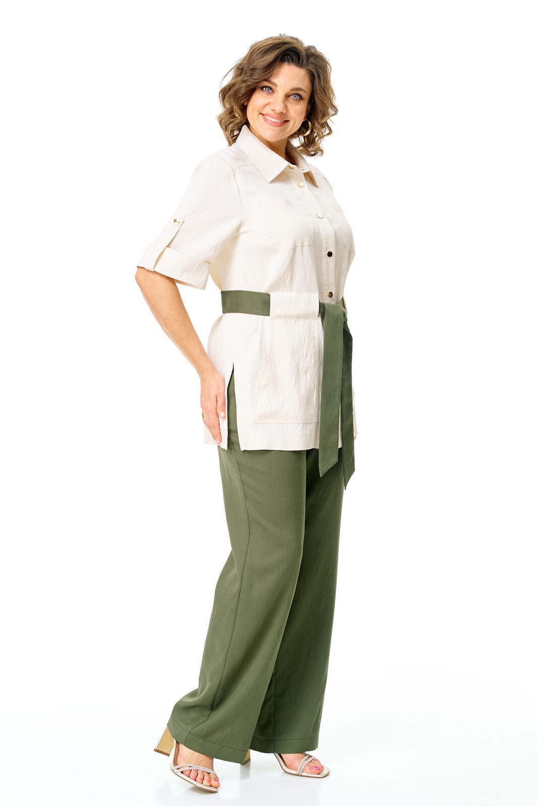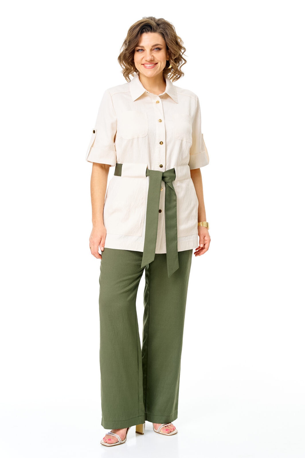 Костюм брючный 1265 молоко+оливка VI ORO