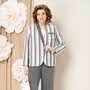 Костюм женский: жакет, брюки. Жакет-рубашка из трикотажа на потайной застежке,со съемным поясом. Длина жакета по центру спинки- 72см. Элегантный спущенный рукав с оригинальной манжетой. Брюки прямые с высокой посадкой, с притачным поясом на резинке. Длина брюк по боковому шву- 100см. Брюки: полиэстер 66%, вискоза 33%, эластан 1%