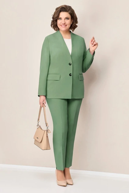 Костюм женский: жакет, брюки, блуза. Стильный костюм-тройка из качественного текстиля. Жакет полуприлегающего силуэта с застежкой на 2 пуговицы и карманами с клапаном. Рукава жакета втачные, длина рукавов-62см. Длина жакета по центру спинки- 71см. Полочки жакета на подкладке. Брюки прямые с высокой посадкой, с притачным поясом на резинке. Длина брюк по боковому шву- 100см. Блуза из легкой трикотажной ткани с фактурой "лапша" со спущенным коротким рукавом. Длина блузы по центру спинки- 59см.Блуза: полиэстер 95%, эластан 5%.