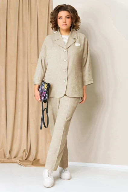 Костюм брючный 1359 светло-бежевый лен VOLNA