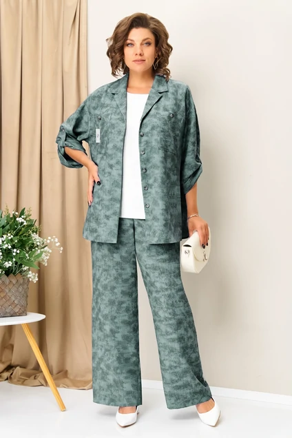 Костюм брючный 1415 серо-мятный VOLNA