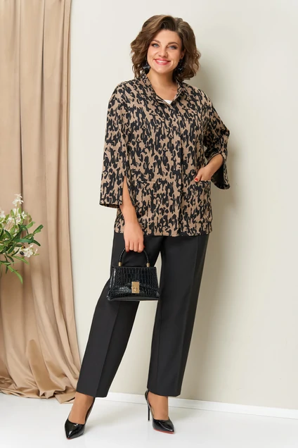 Костюм брючный 1439 черно-бежевый VOLNA