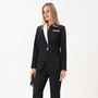 Элегантный черный брючный костюм URS — воплощение женственности, уверенности и безупречного вкуса. Этот женский брючный костюм создан для современных женщин, которые ценят классику, элегантность и комфорт в каждом движении. Стильный контраст черного и белого придает образу благородную строгость и подчеркивает индивидуальность, создавая гармоничное сочетание делового и утонченного стиля. Костюм женский ЮРС, нарядный, состоит из жакета и брюк, выполнен из костюмно - плательной ткани. костюмно-плательной ткани.